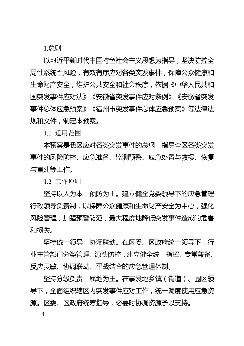 【总体预案】宿州市埇桥区突发事件总体应急预案