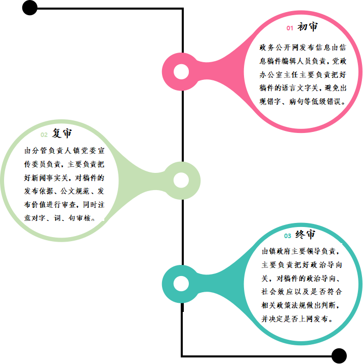 为进一步规范信息发布和管理,推进网络宣传工作的规范化、制度化,确保信息发布准确、安全、有效,根据国家、省市有关部门文件和通知要求,结合我镇实际,决定对我镇网站、政务微博等政务新媒体平台所发布信息实行三审制,未经三审的信息一律不得发布。