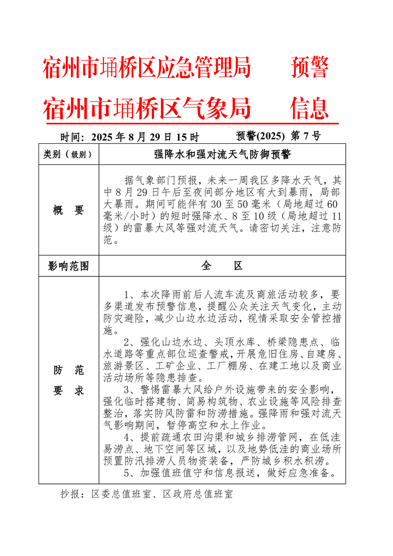 【自然灾害类预警信息】预警(2025)第7号强降水和强对流天气防御预警