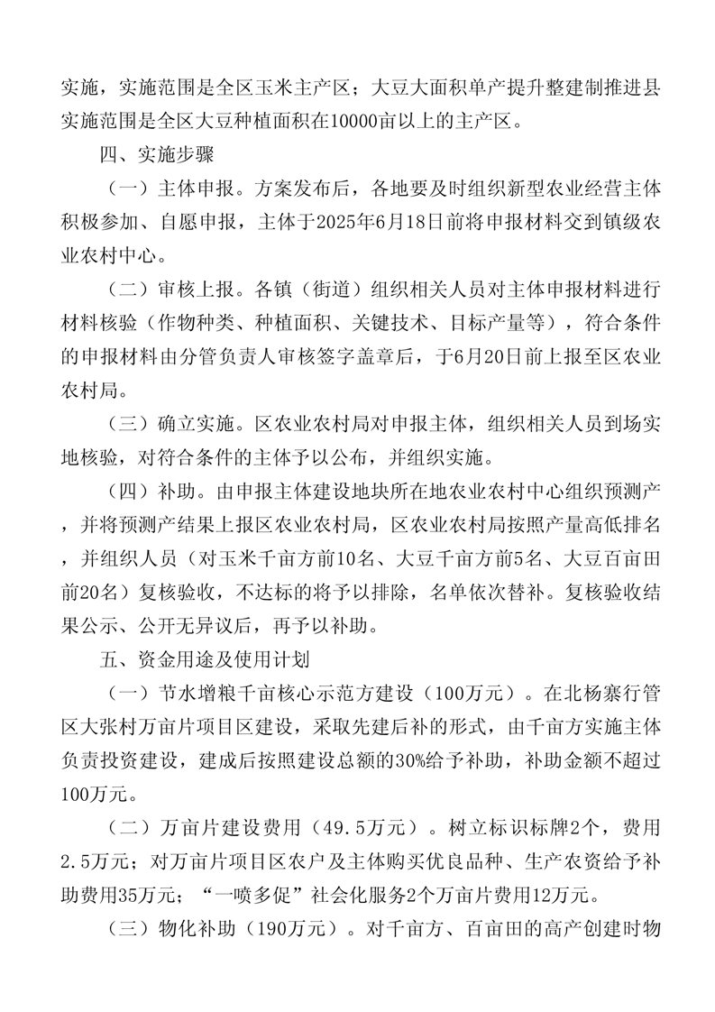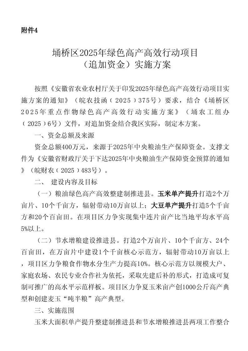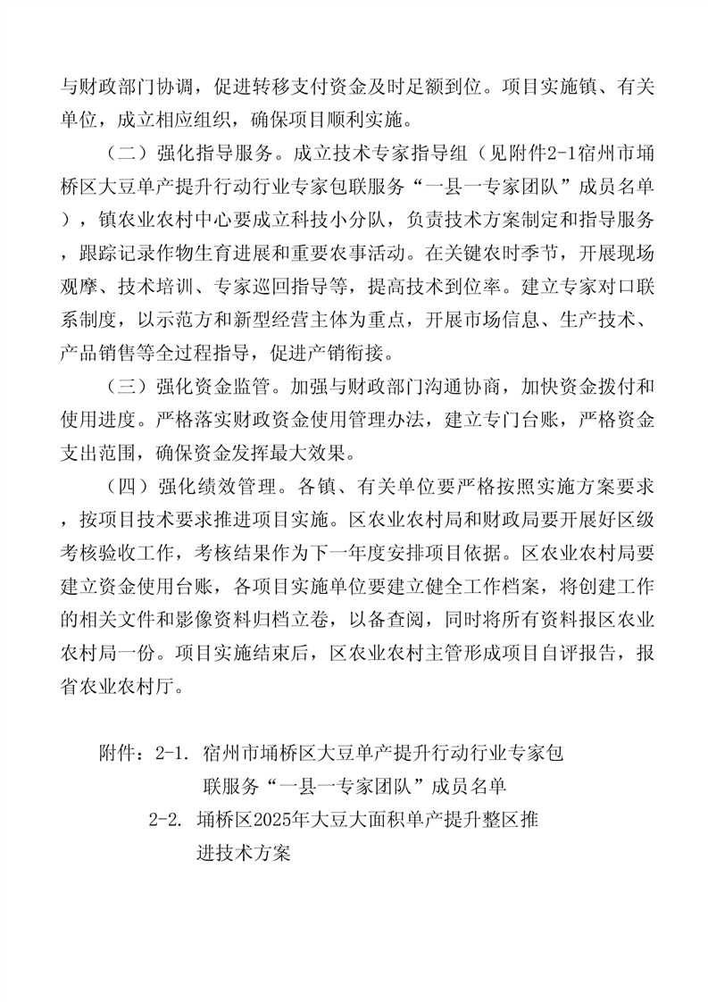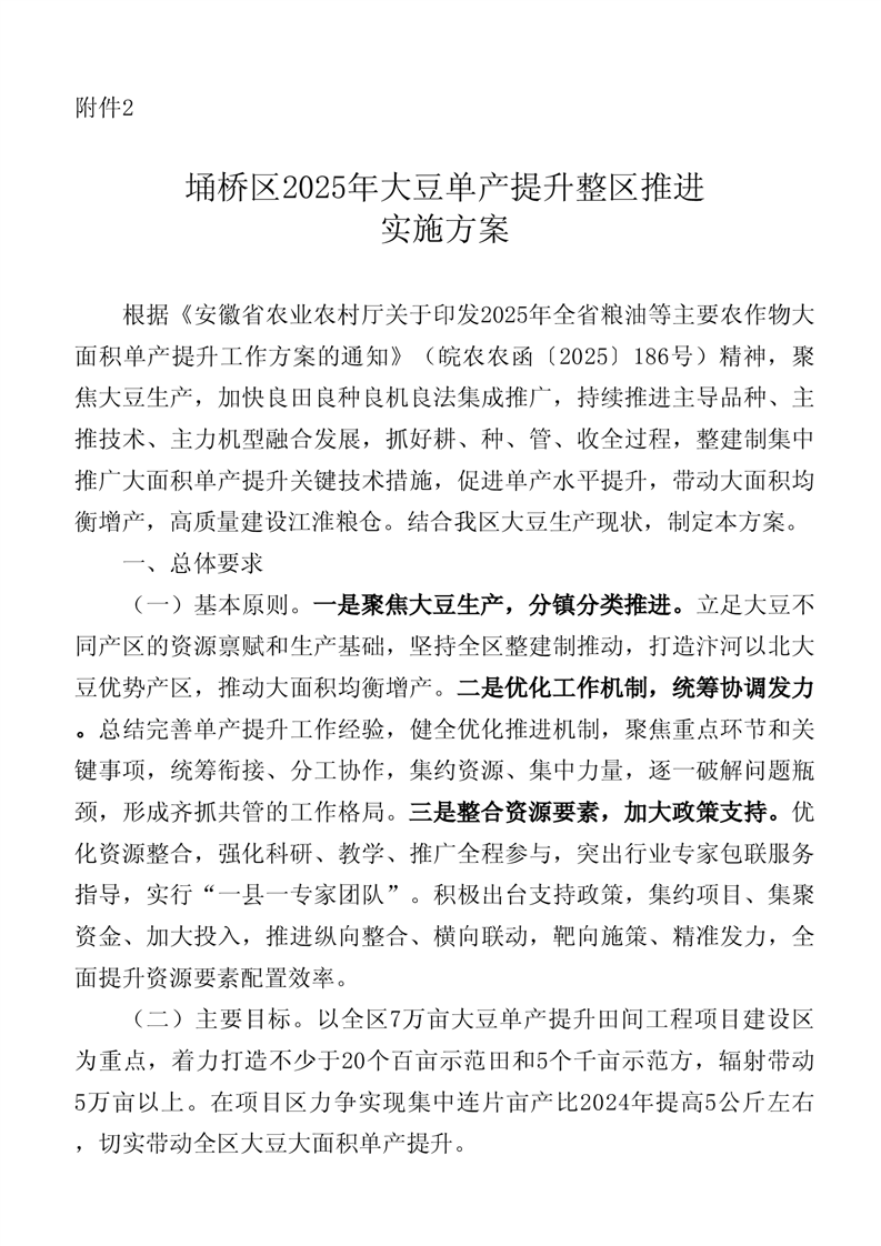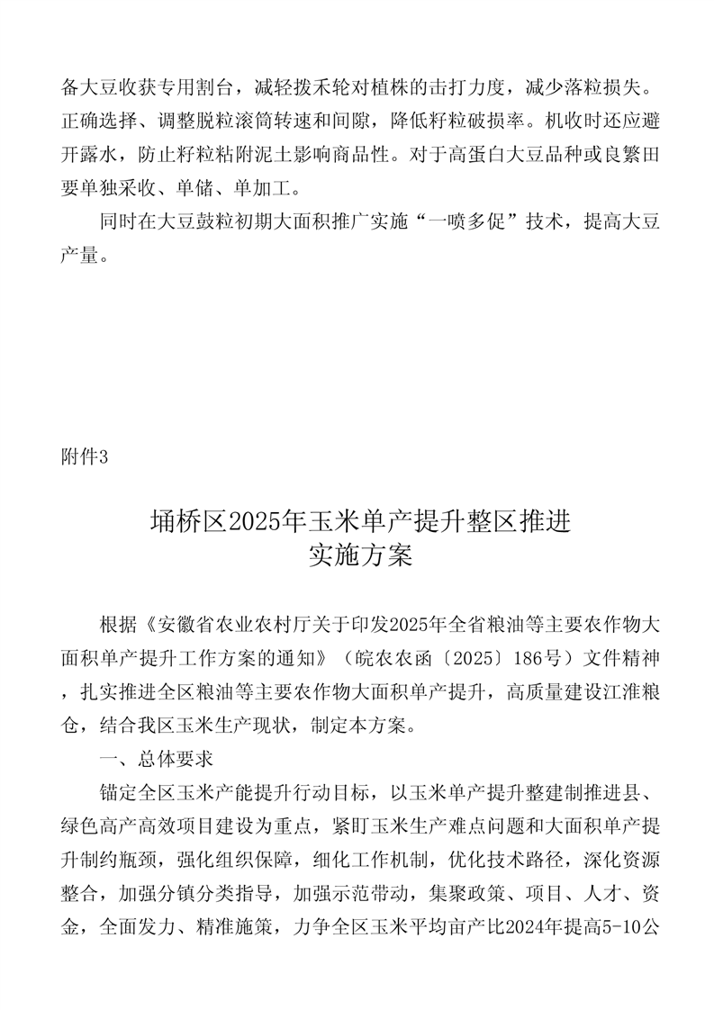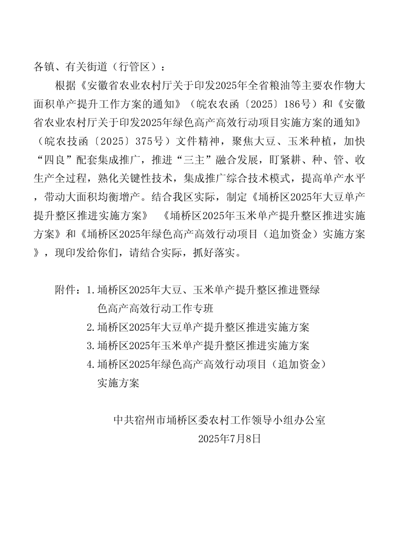关于印发《埇桥区2025年大豆单产提升整区推进实施方案》《埇桥区2025年玉米单产提升整区推进实施方案》《埇桥区2025年绿色高产高效行动项目(追加资金)实施方案》的通知