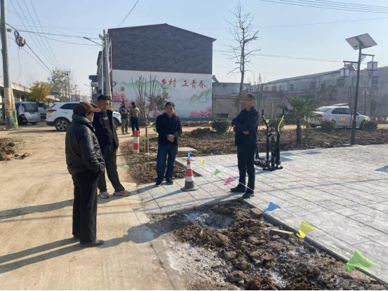 在项目现场,工人们有序进行广场硬化、景观绿化、管网铺设等作业,一幅“乡村正青春”的彩绘墙绘生动展现了和美乡村的新风貌,与周边新栽的苗木、太阳能路灯等设施交相辉映,勾勒出宜居宜业的乡村新图景。督导中,镇领导与施工负责人、村干部及村民代表亲切交流,详细询问工程进度、质量安全及群众需求,强调要聚焦“生态宜居、乡风文明、治理有效”目标,在细节处下功夫,让项目建设既符合规划要求,又充分体现民意。