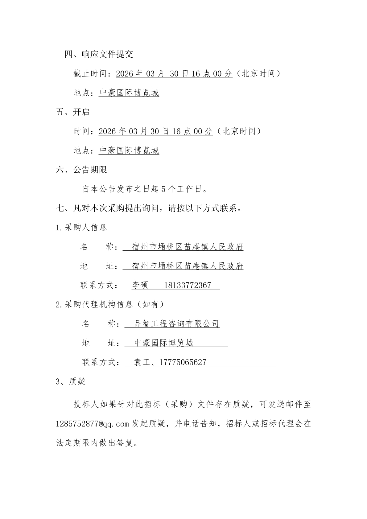 宿州市埇桥区苗庵镇新庄行政村张安中心村村庄亮化项目竞争性磋商公告