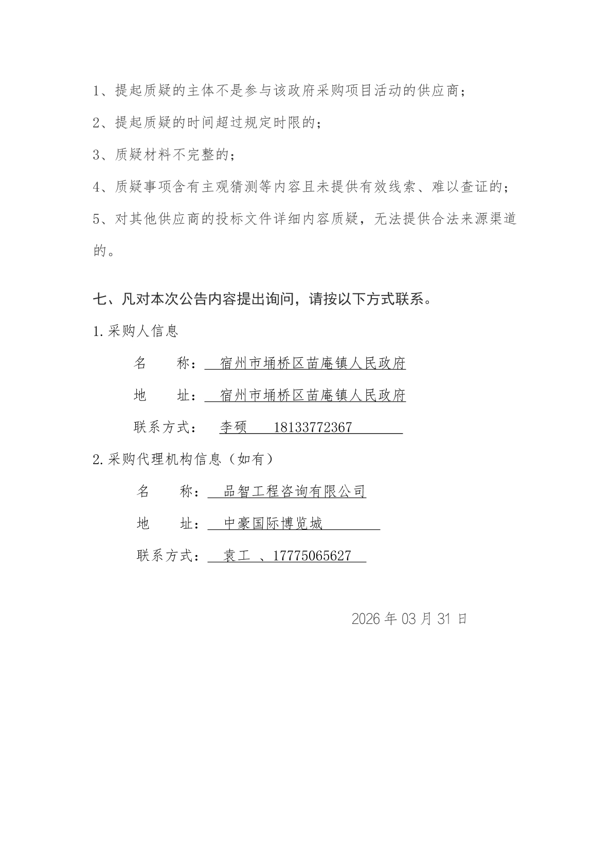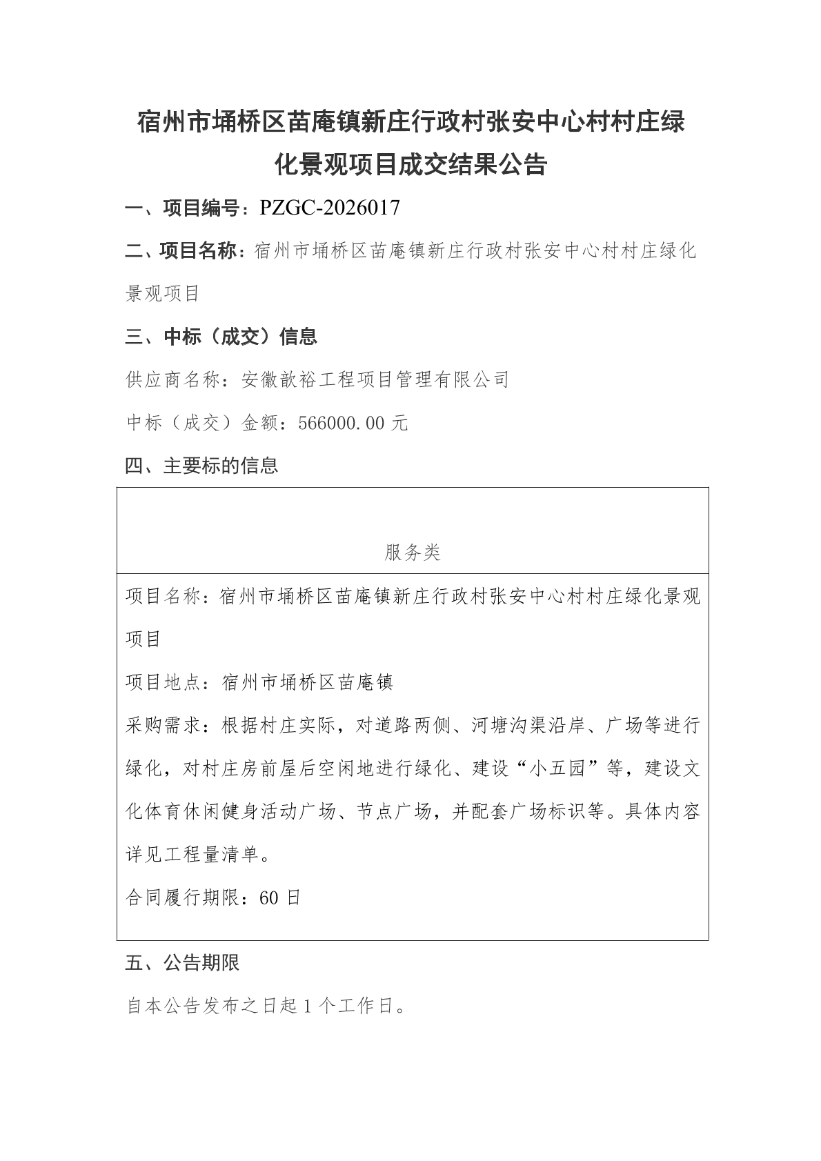宿州市埇桥区苗庵镇新庄行政村张安中心村村庄绿化景观项目成交结果公告