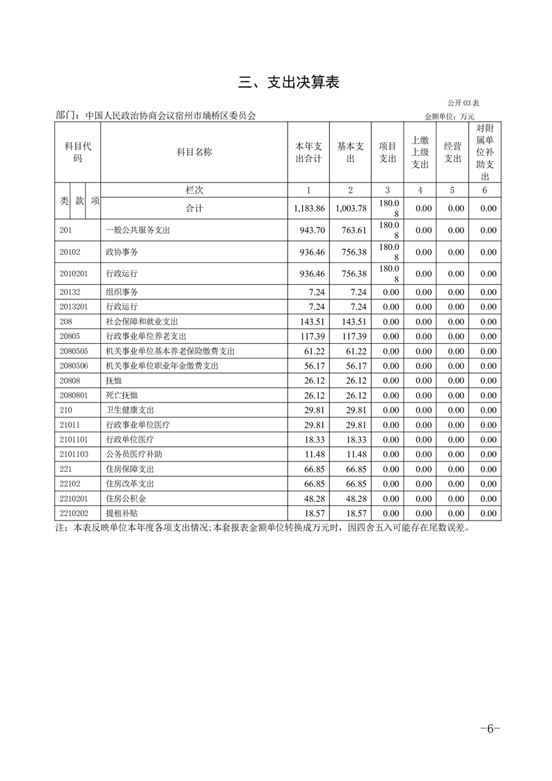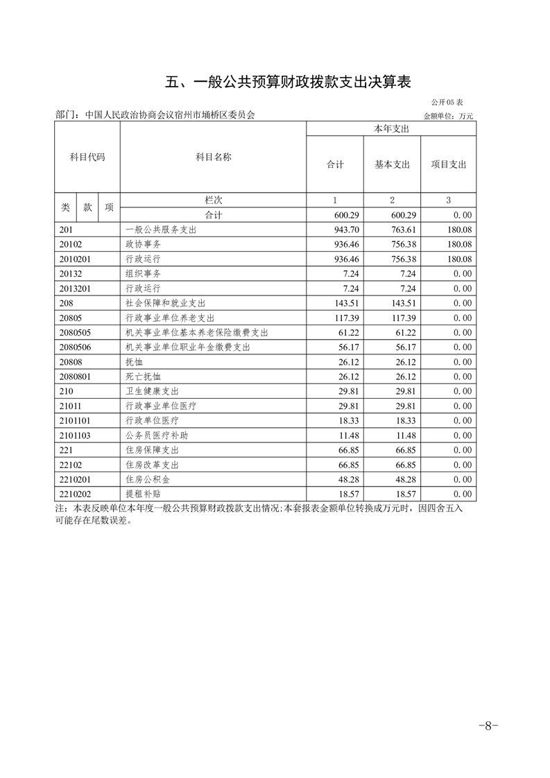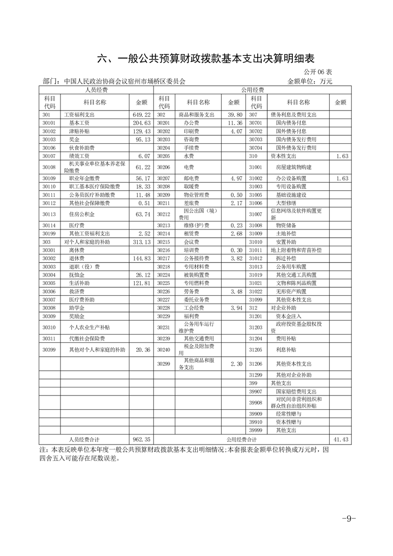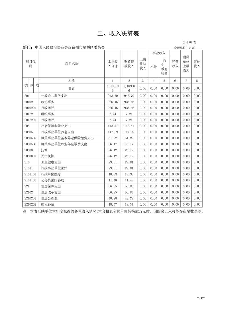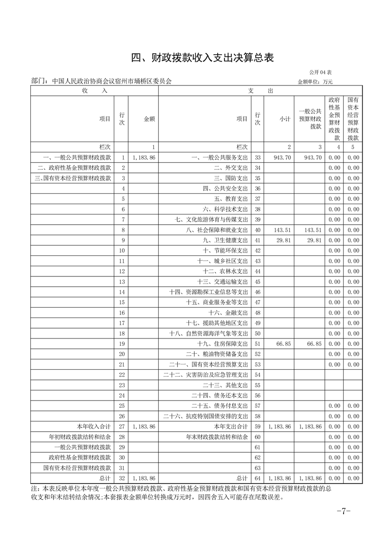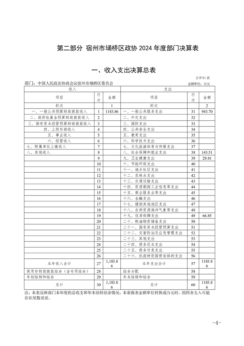 政协宿州市埇桥区委员会2024年度部门决算