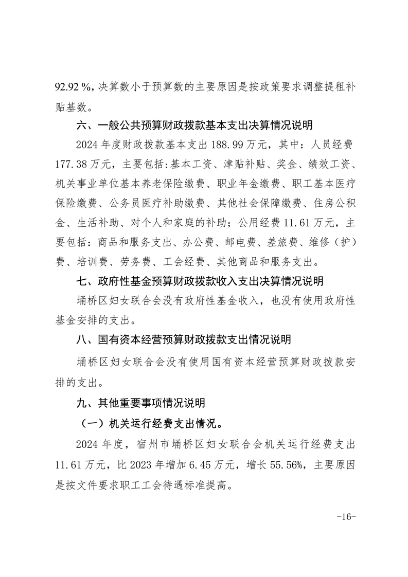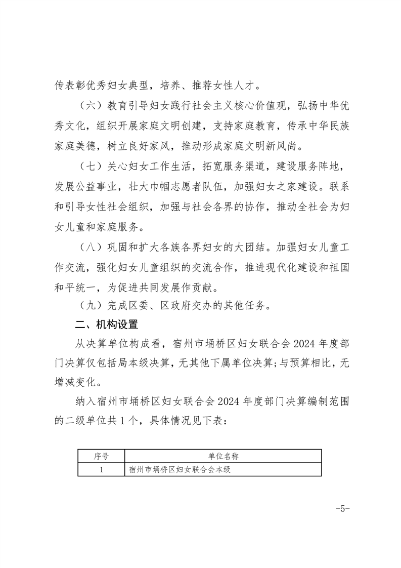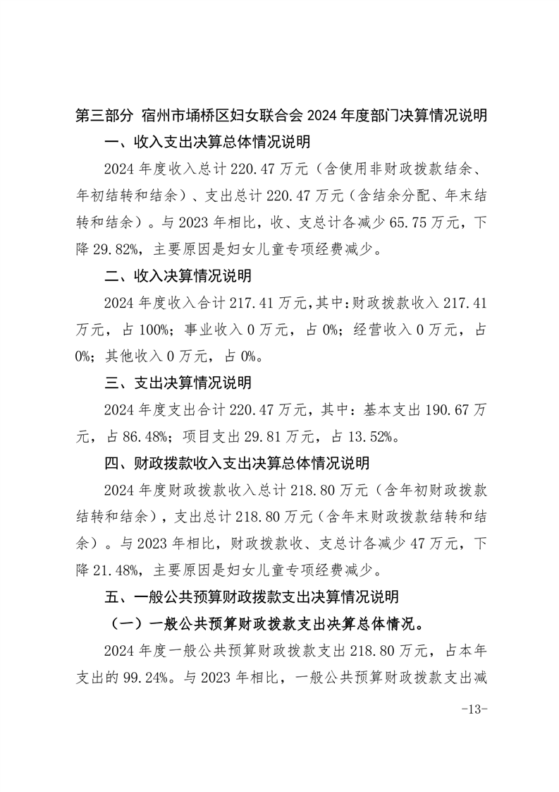 宿州市埇桥区妇女联合会2024年部门决算公开说明