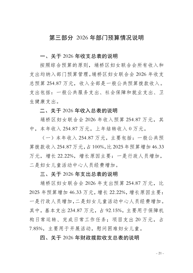 宿州市埇桥区妇女联合会2026年预算公开说明