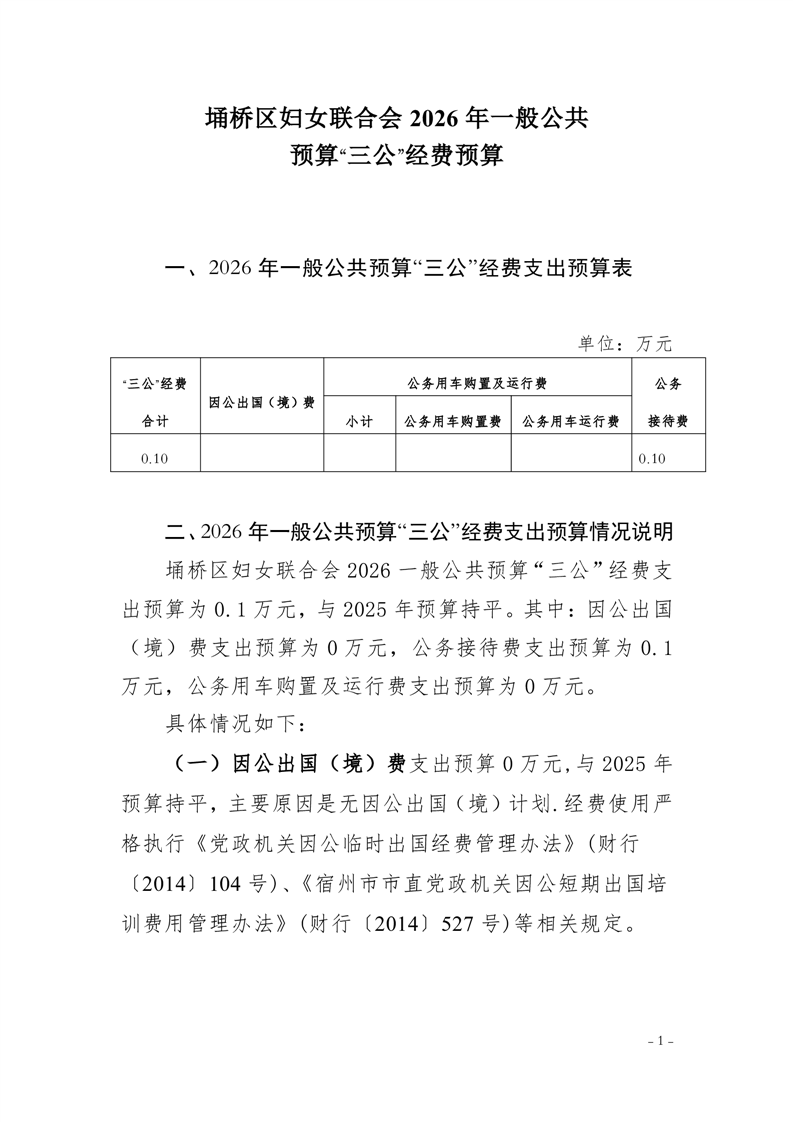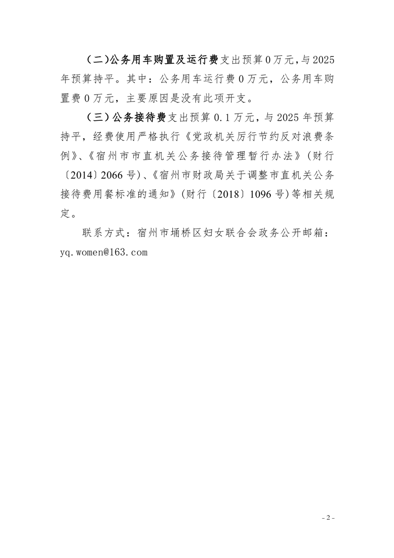 宿州市埇桥区妇女联合会2026年部门“三公”经费预算说明