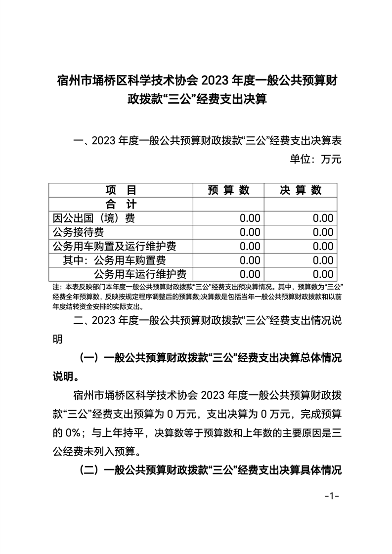 宿州市埇桥区科学技术协会2023年度一般公共预算财政拨款“三公”经费支出决算