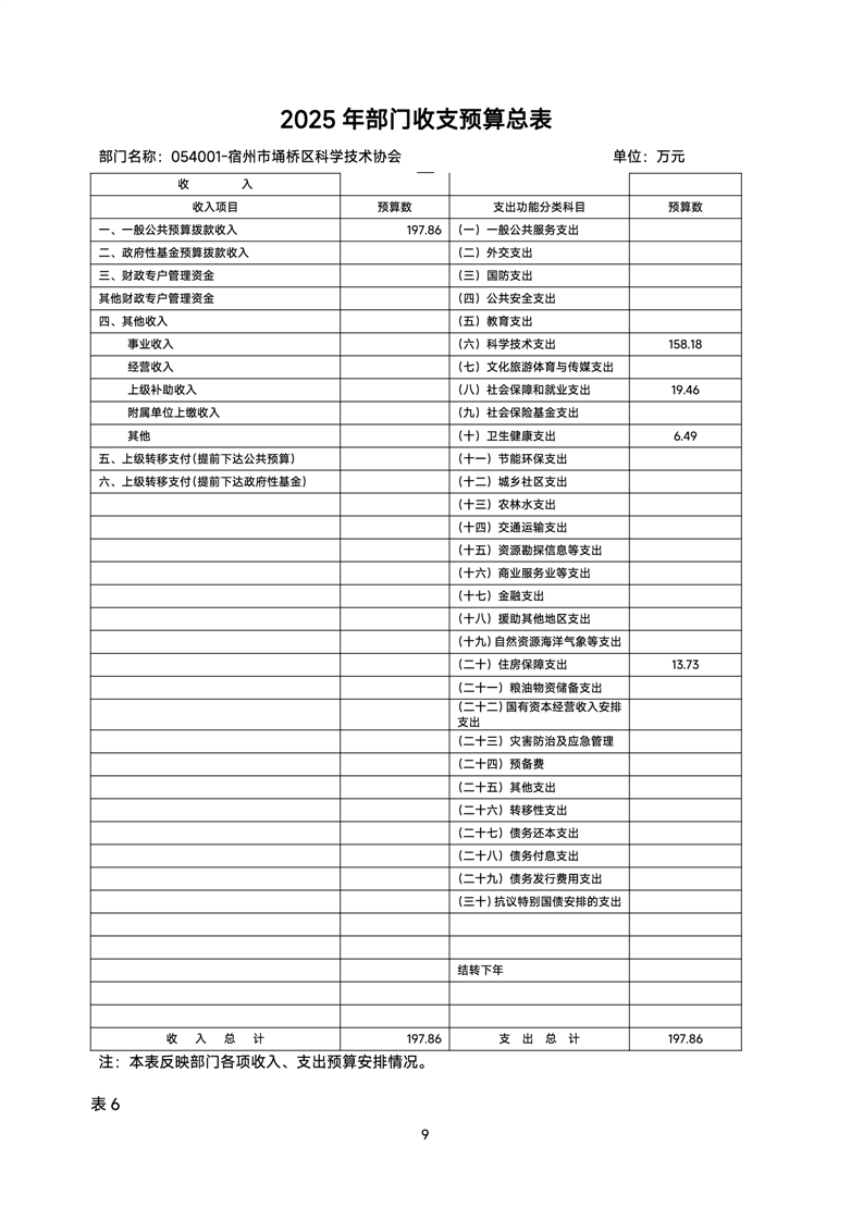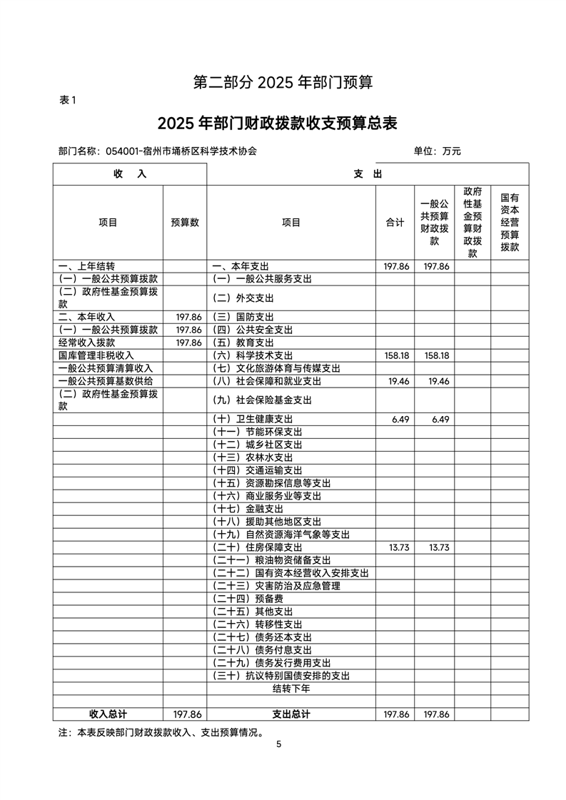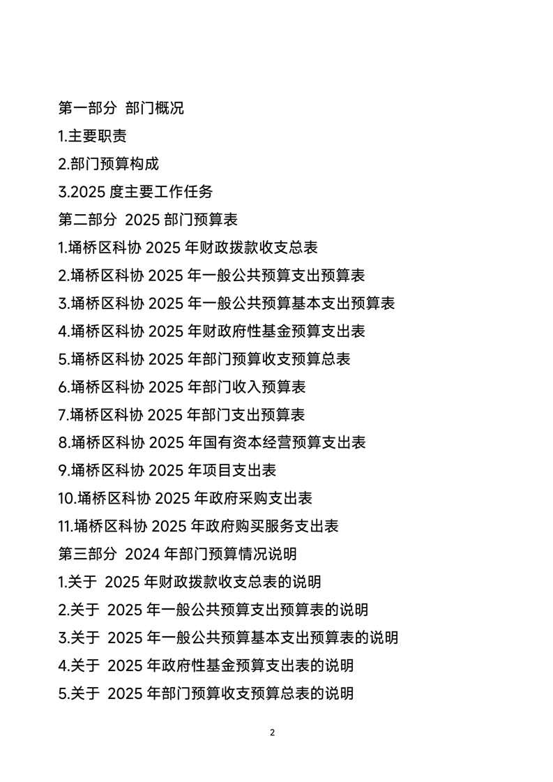2025科协部门预算