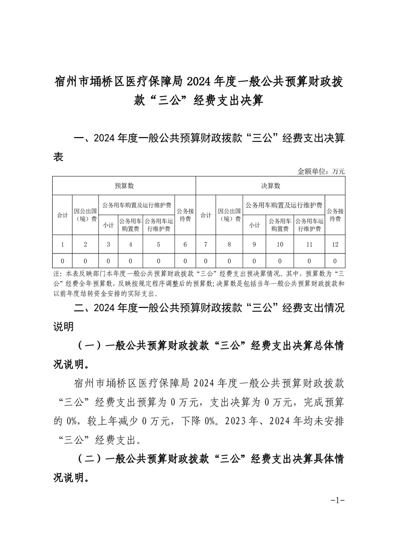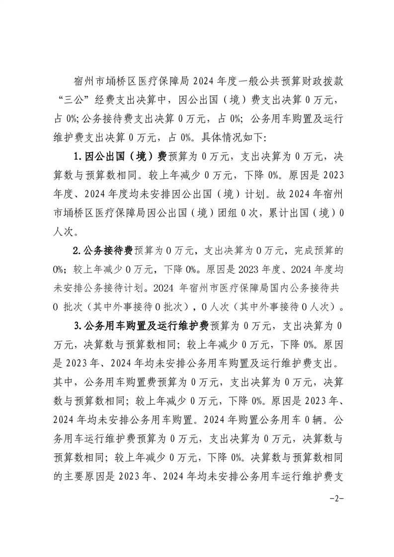 宿州市埇桥区医疗保障局本级2024年度一般公共预算财政拨款“三公”经费支出决算