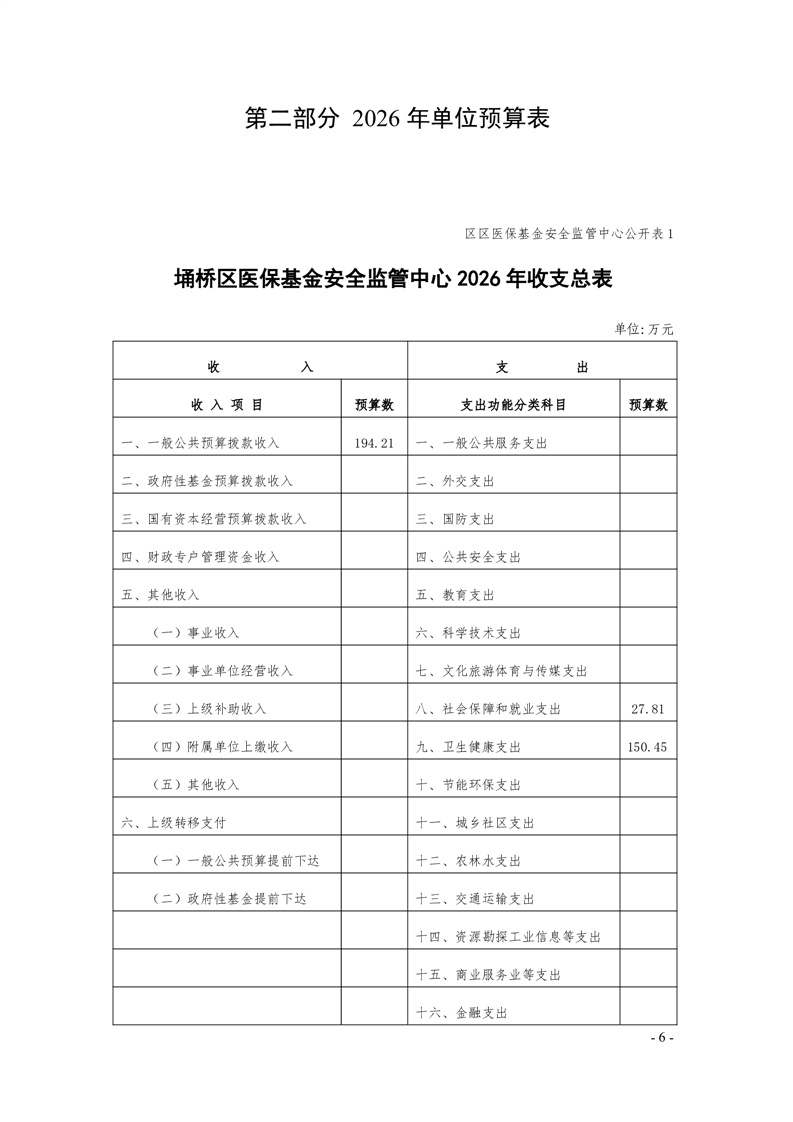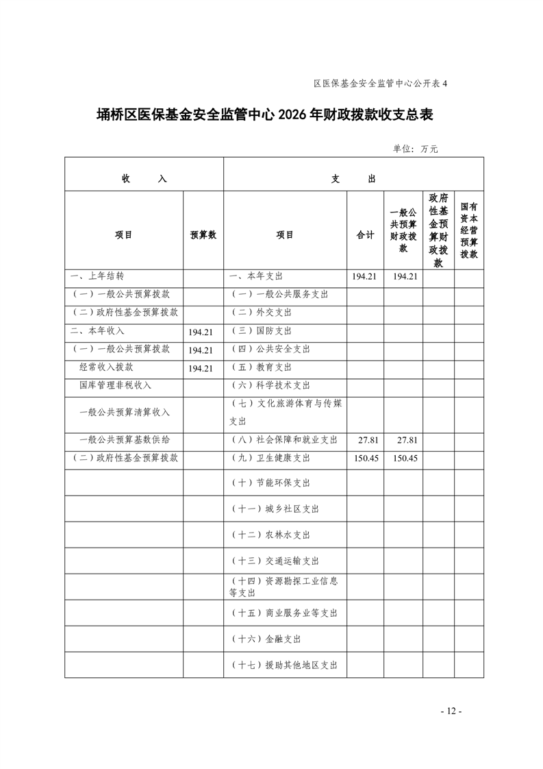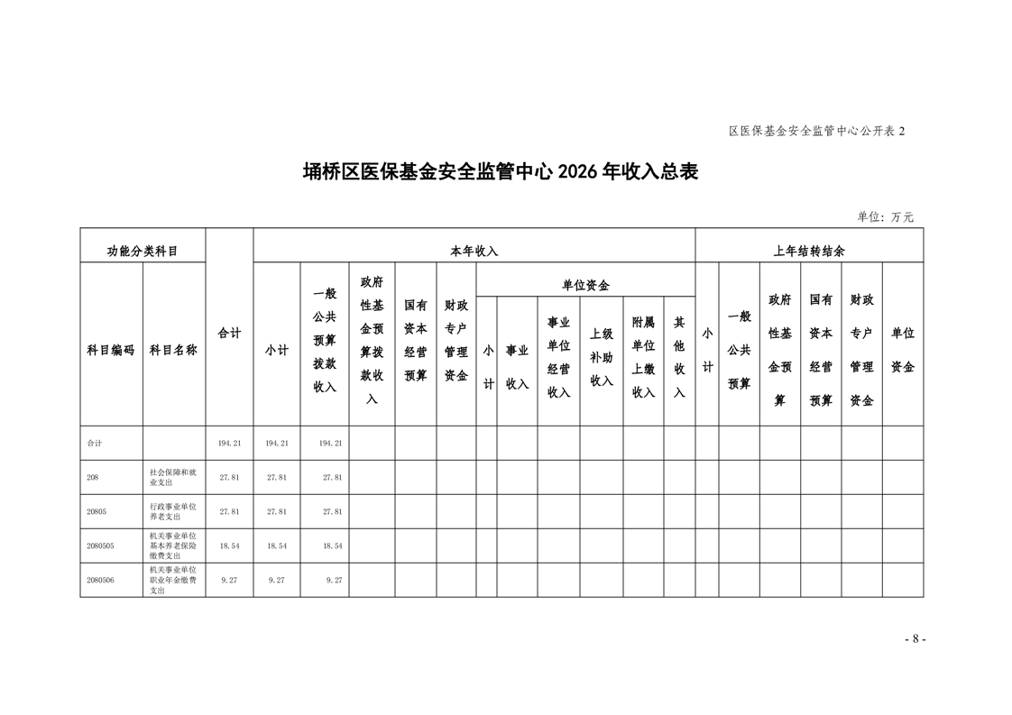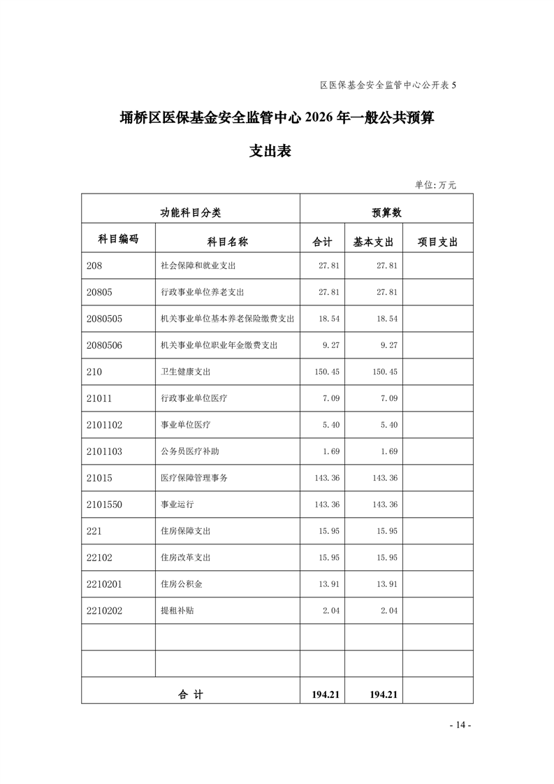 2026年度埇桥区医保基金安全监管中心预算公开
