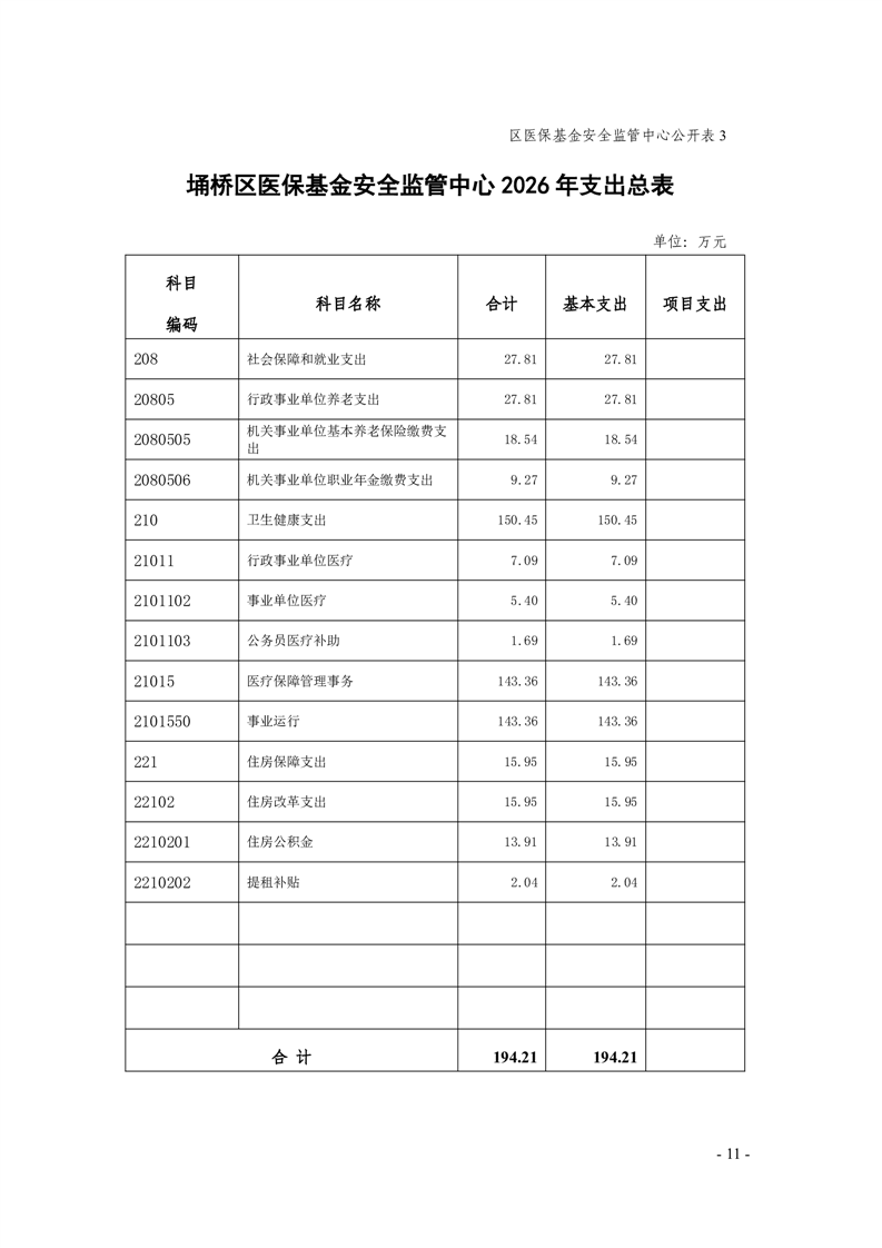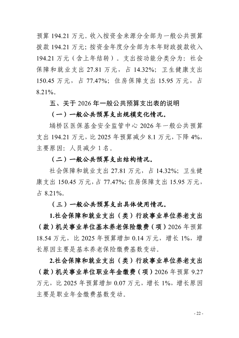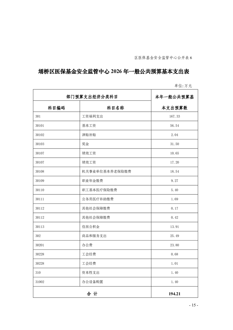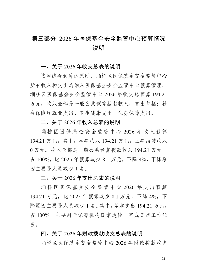 2026年度埇桥区医保基金安全监管中心预算公开