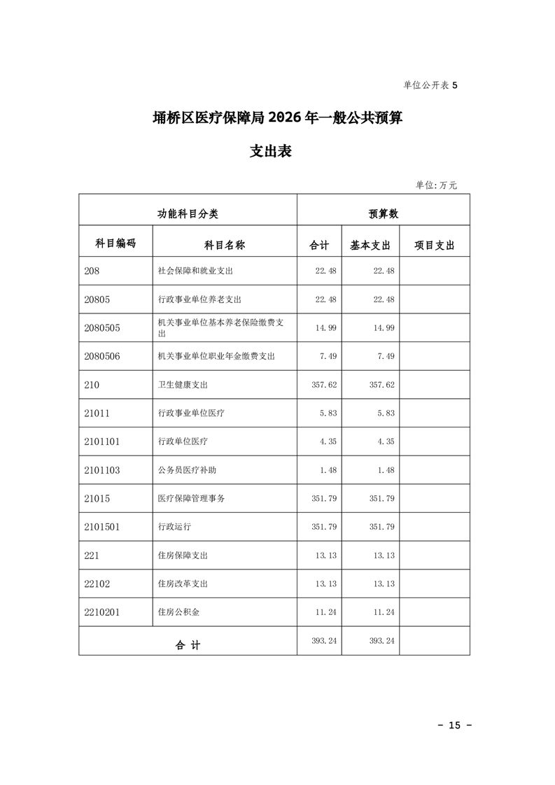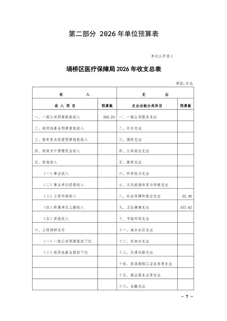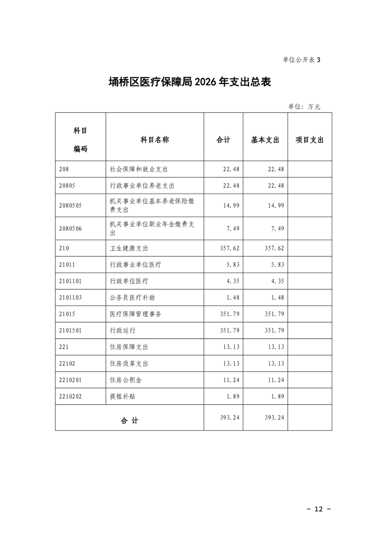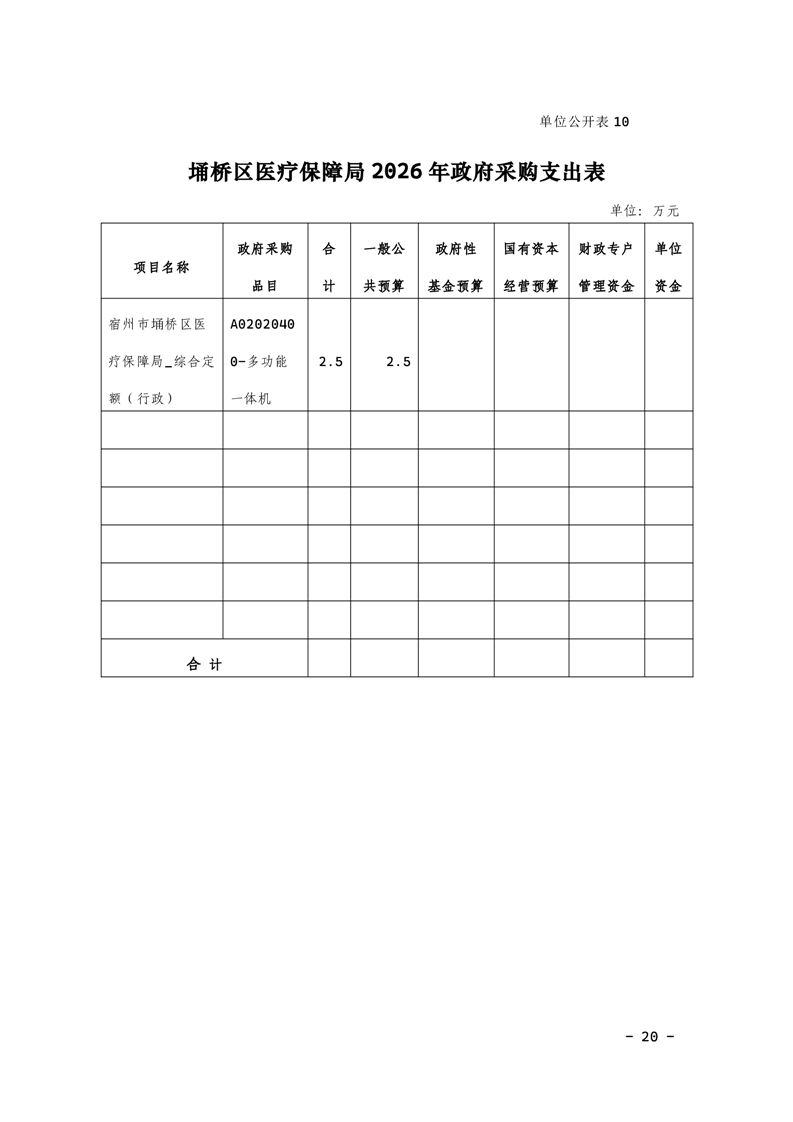 2026年度埇桥区医疗保障局单位本级预算公开