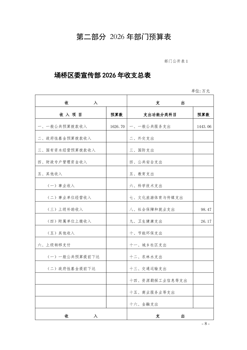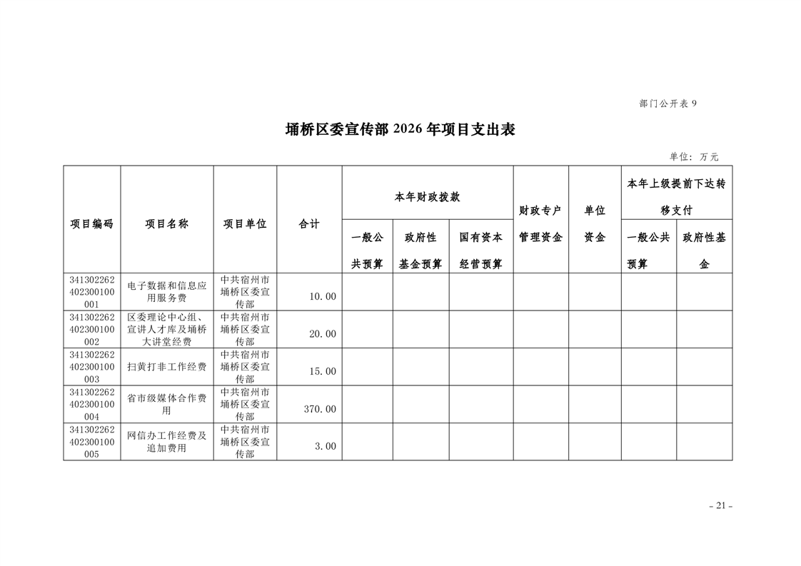 2026年埇桥区委宣传部预算公开