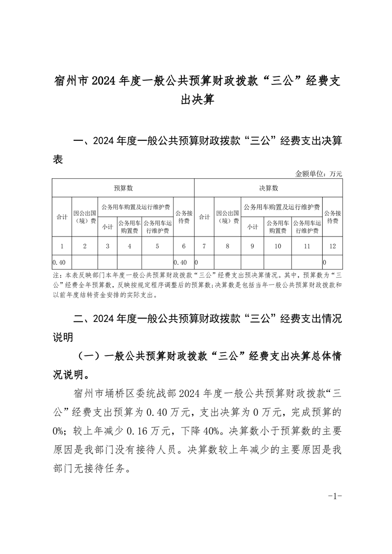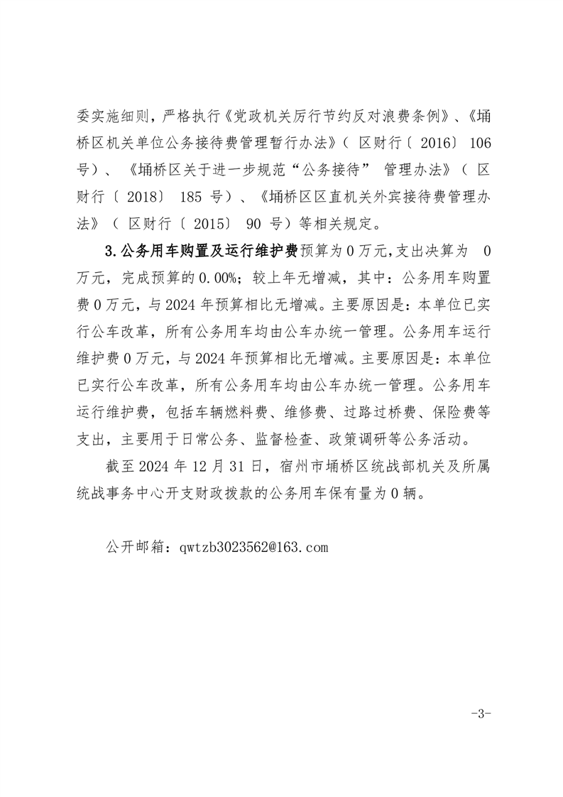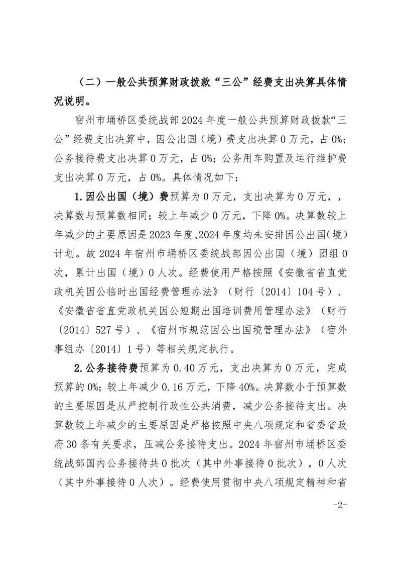 宿州市埇桥区委统战部2024年度一般公共预算财政拨款“三公”经费支出决算
