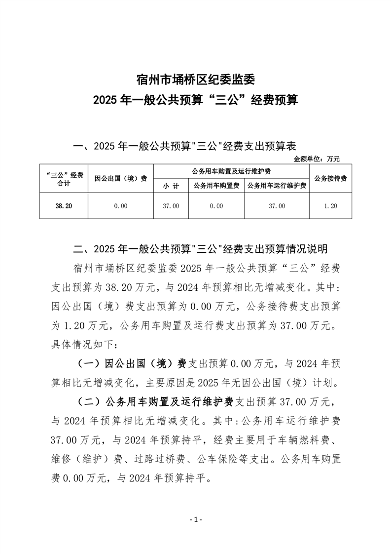 宿州市埇桥区纪委监委2025年部门“三公”经费预算