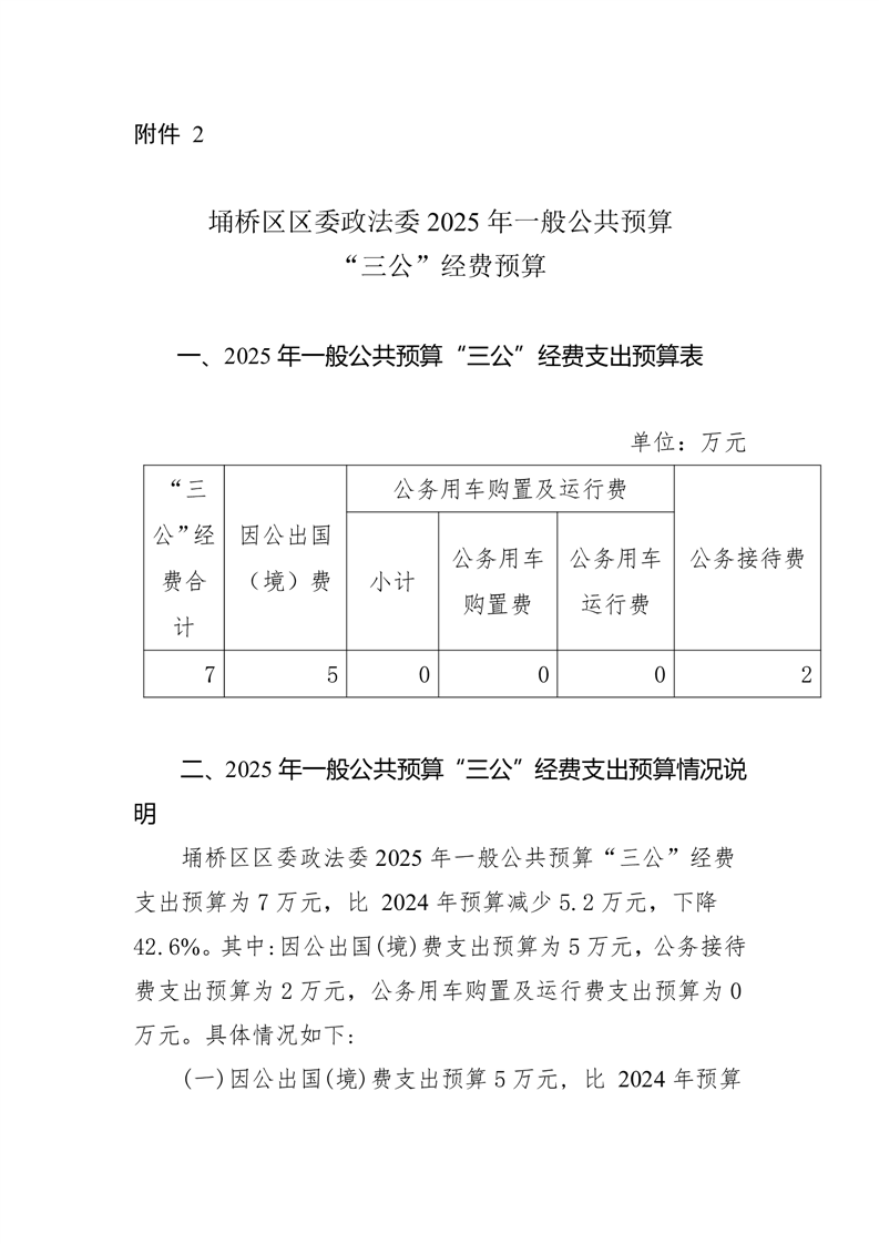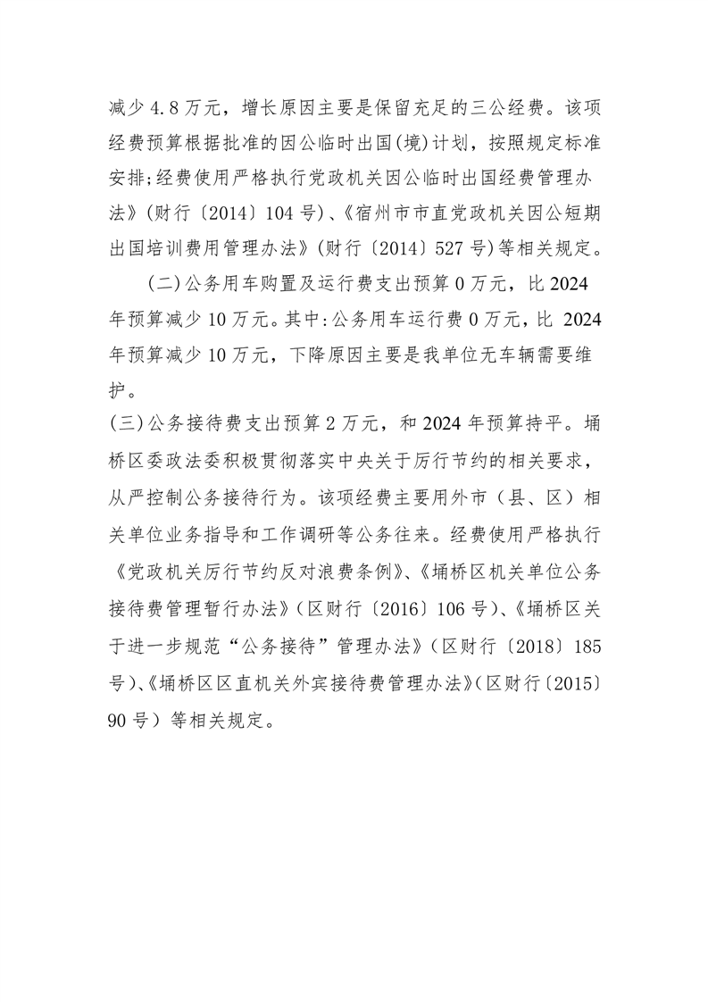 埇桥区区委政法委2025年一般公共预算“三公”经费预算