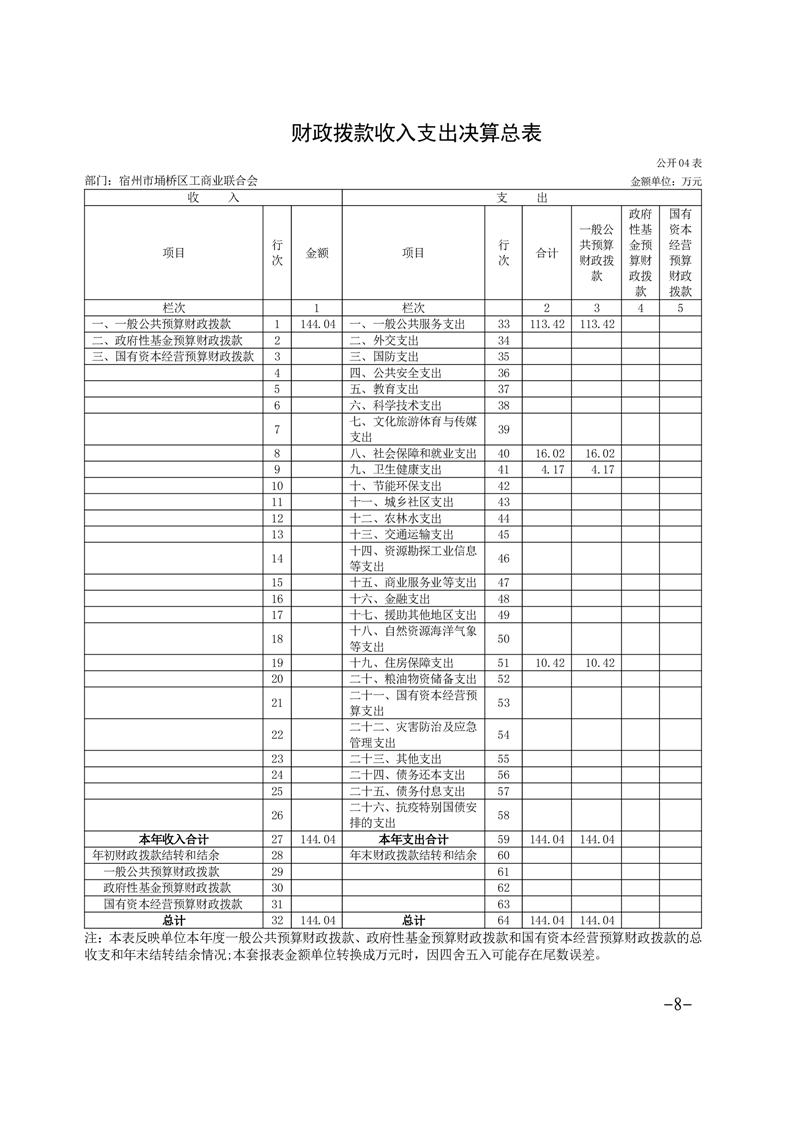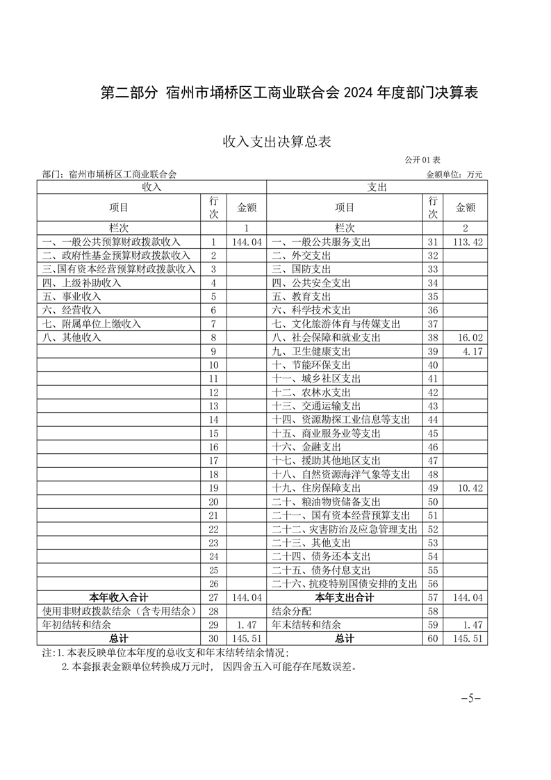 埇桥区工商业联合会2024年度部门决算公开说明