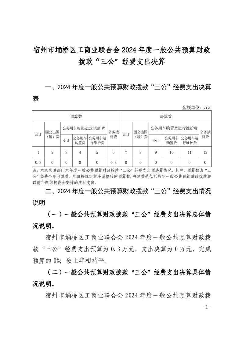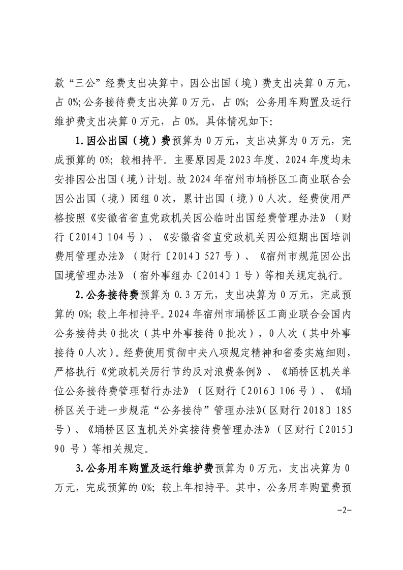埇桥区工商业联合会2024年“三公”经费支出决算