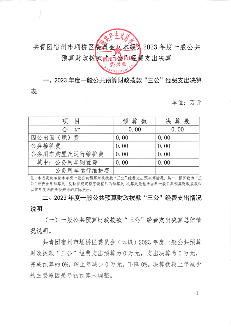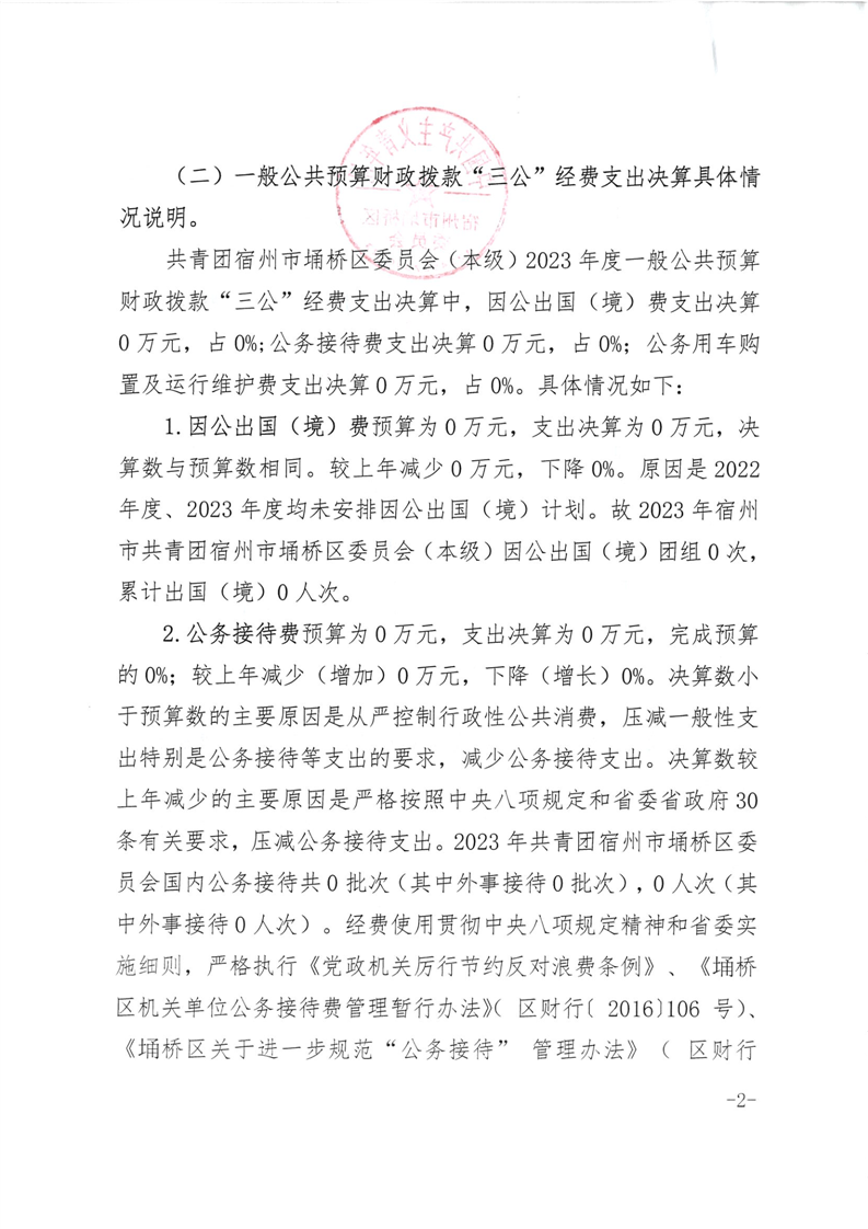 共青团宿州市埇桥区委员会本级2023年度三公经费支出决算