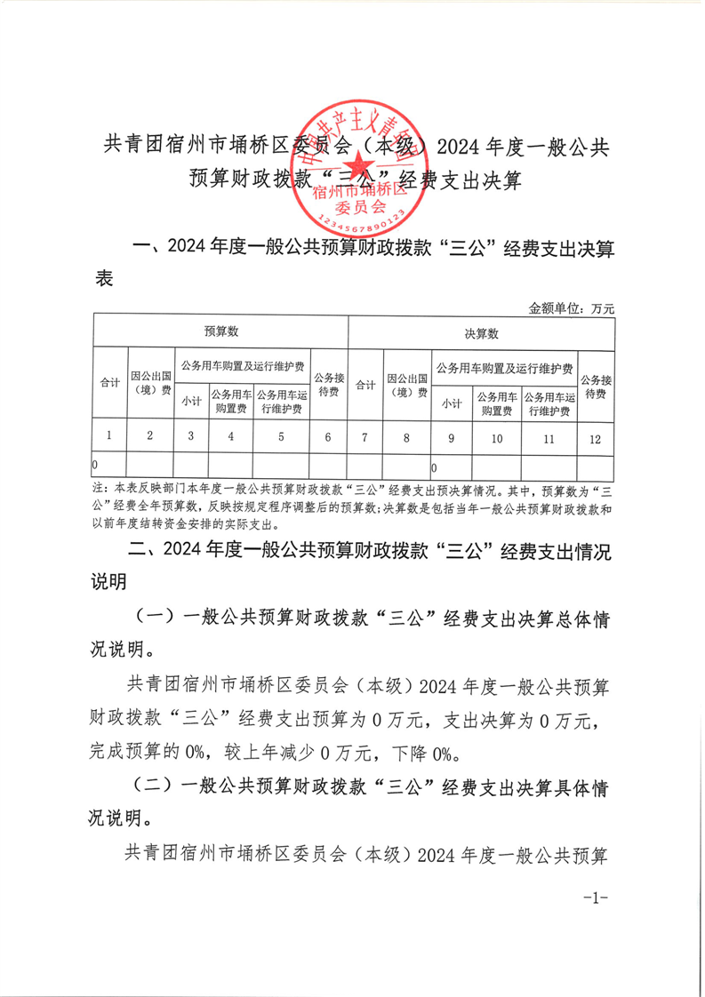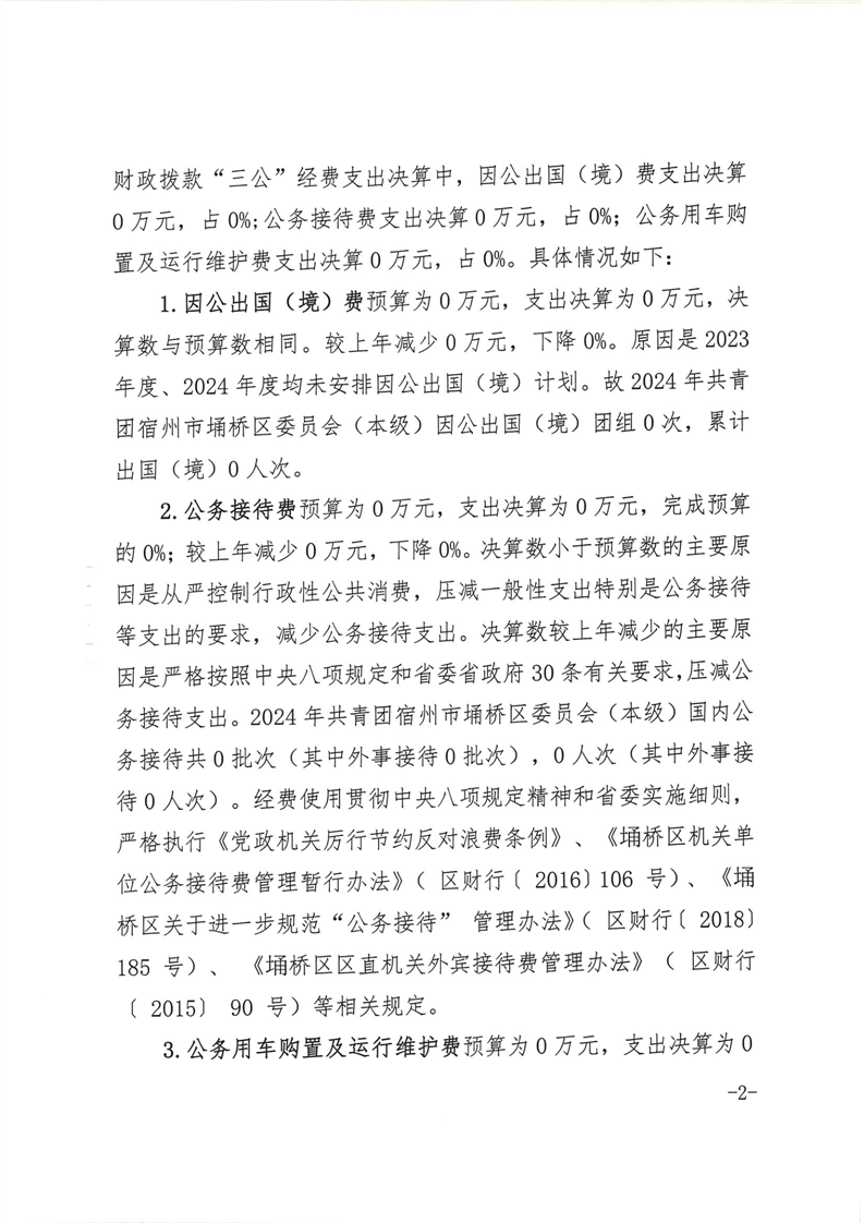 共青团宿州市埇桥区委员会(本级)2024年度“三公”经费支出决算