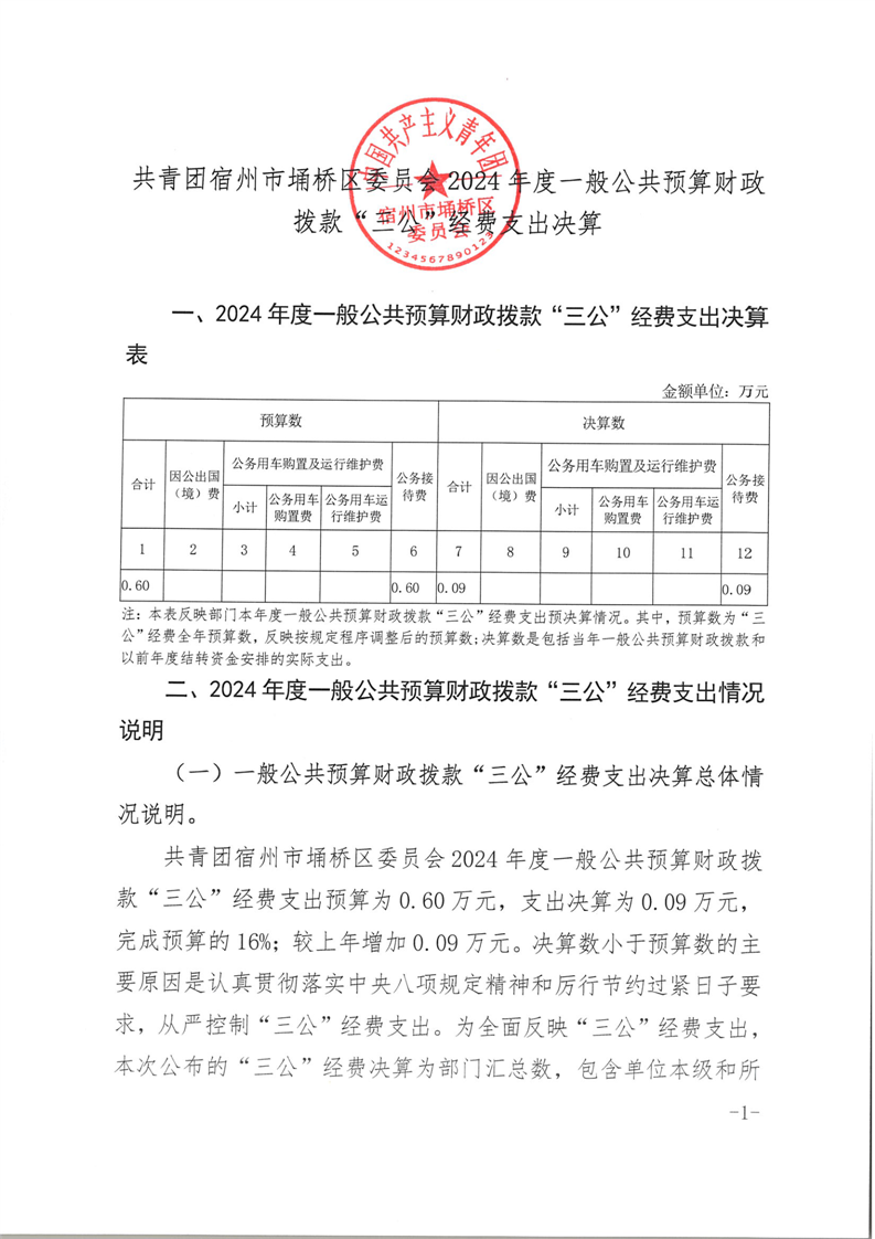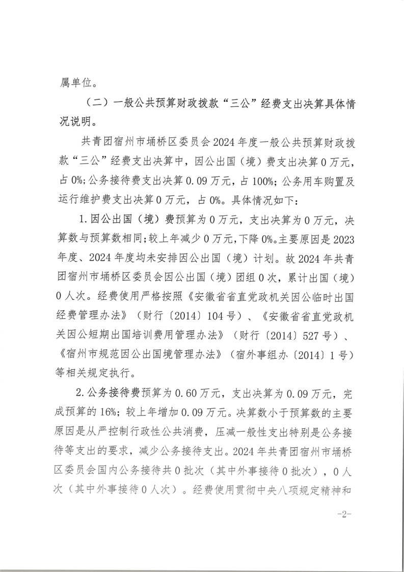 共青团宿州市埇桥区委员会2024年度“三公”经费支出决算