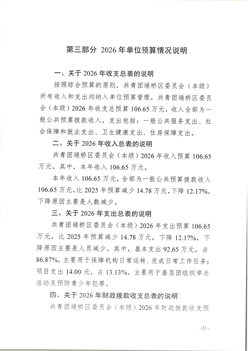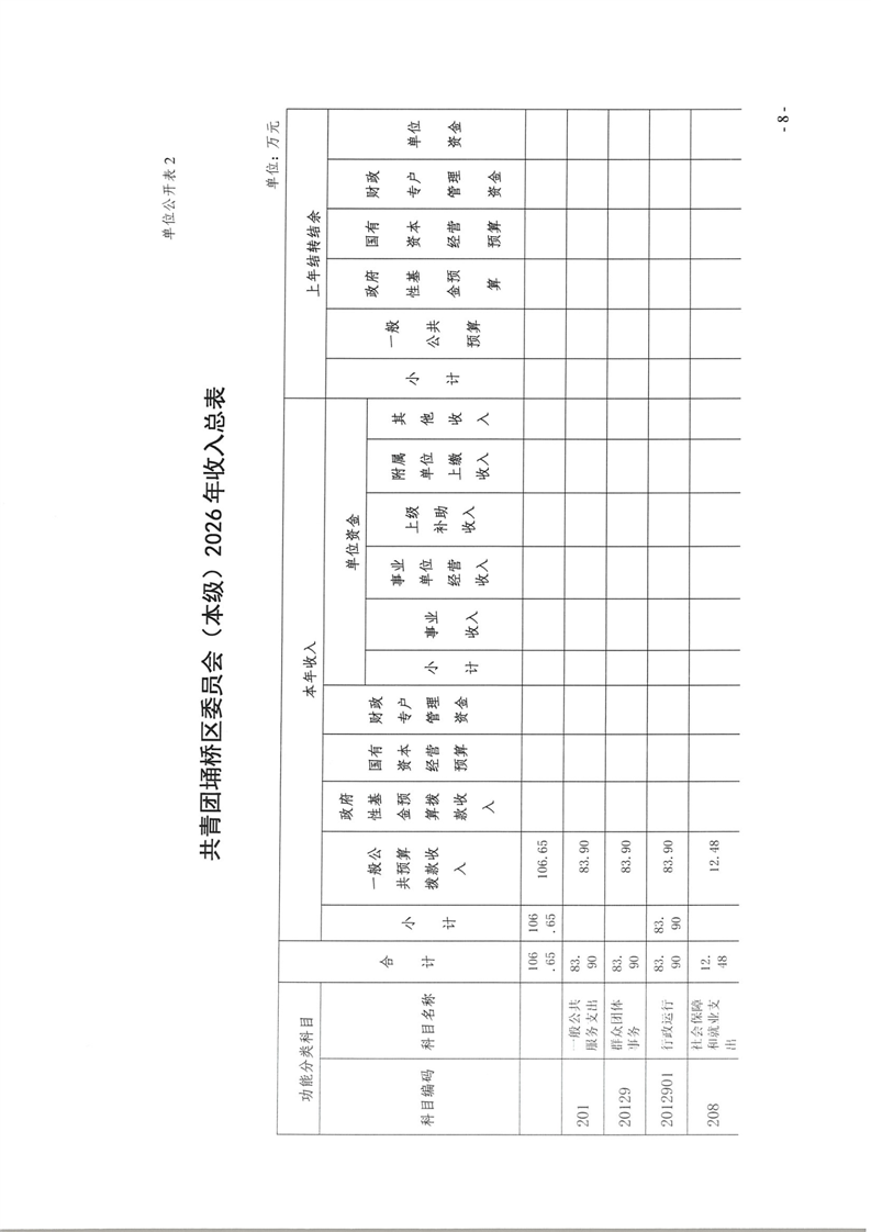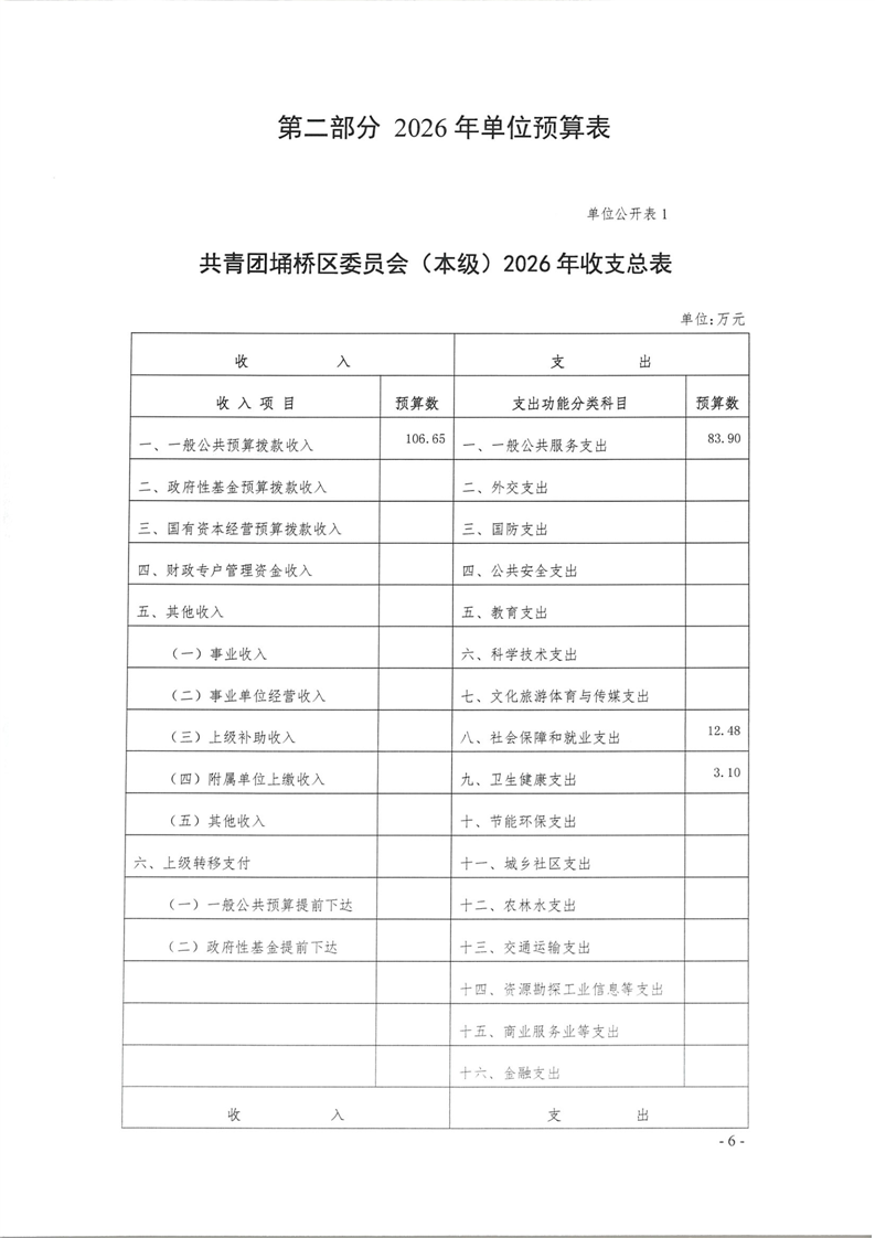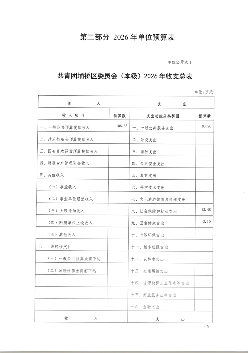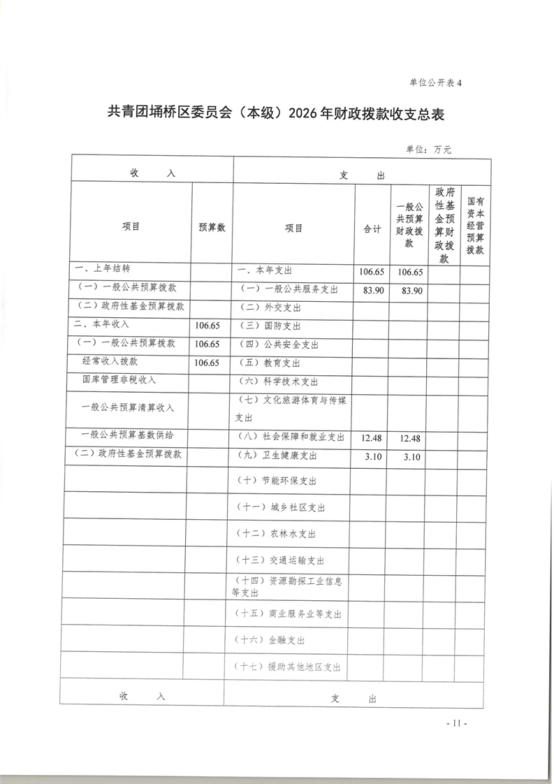 共青团埇桥区委员会(本级)2026年度预算公开