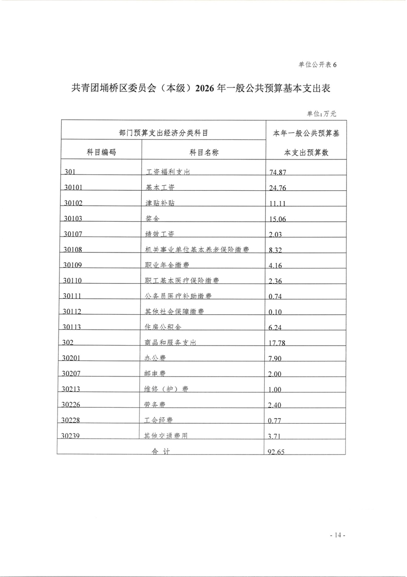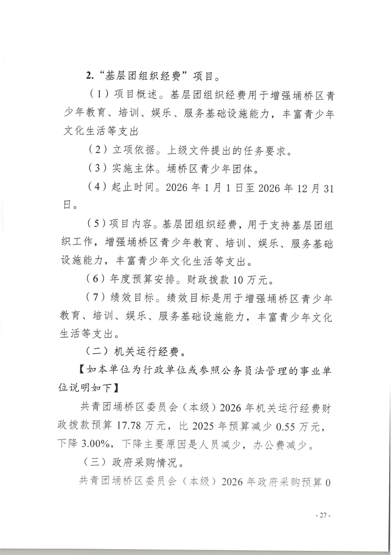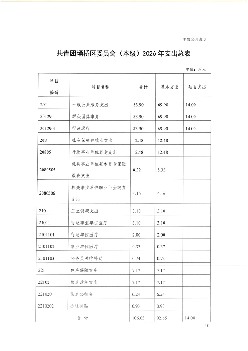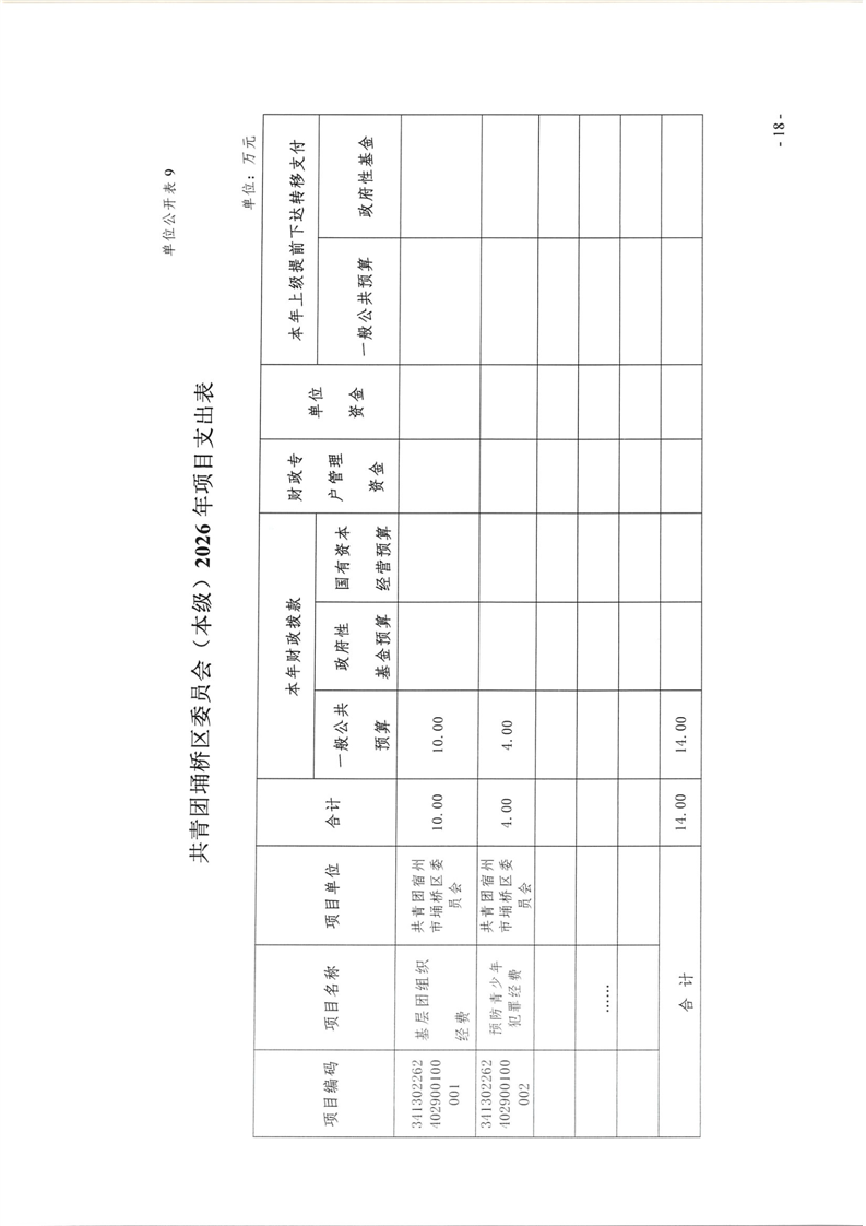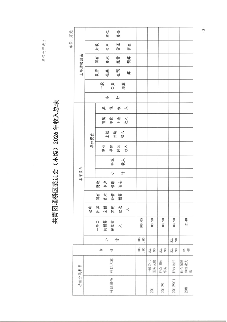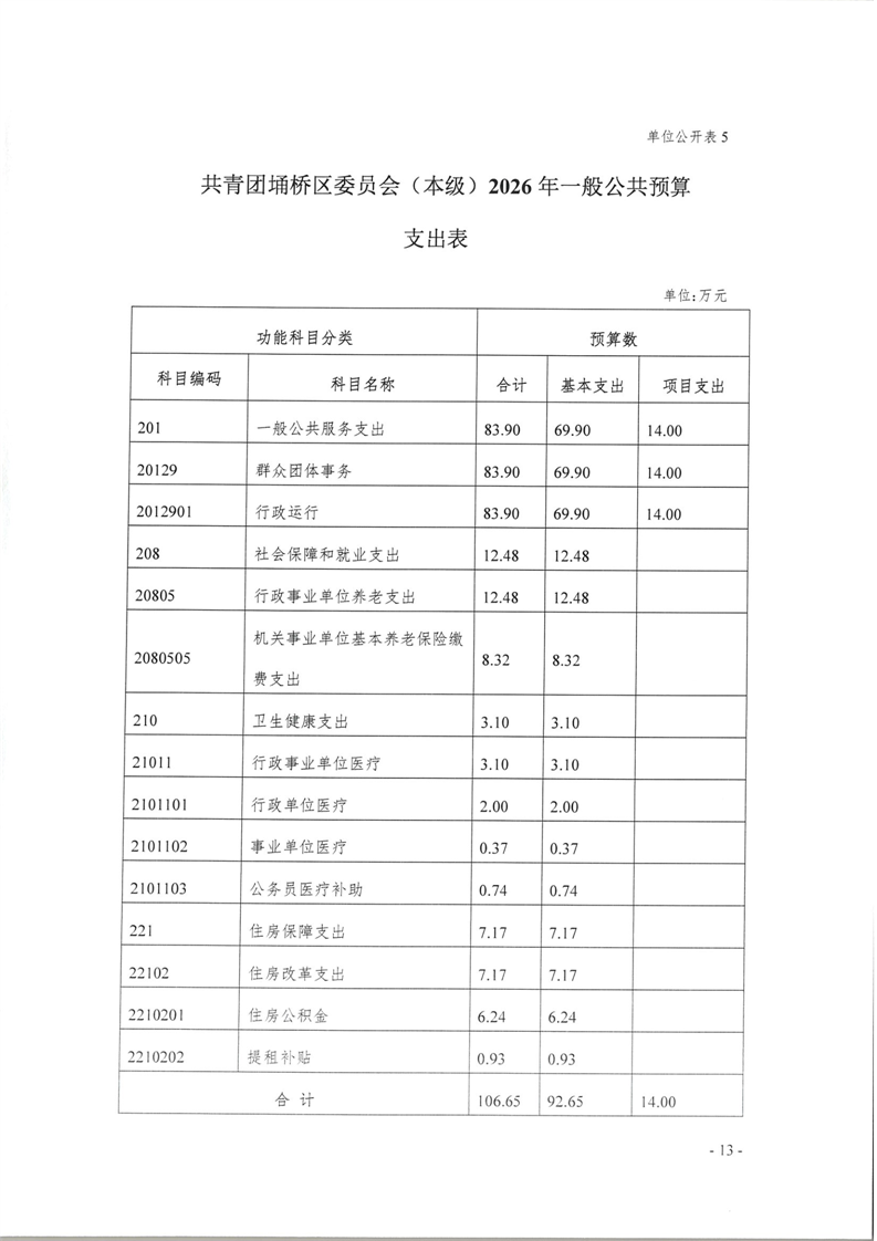 共青团埇桥区委员会(本级)2026年度预算公开