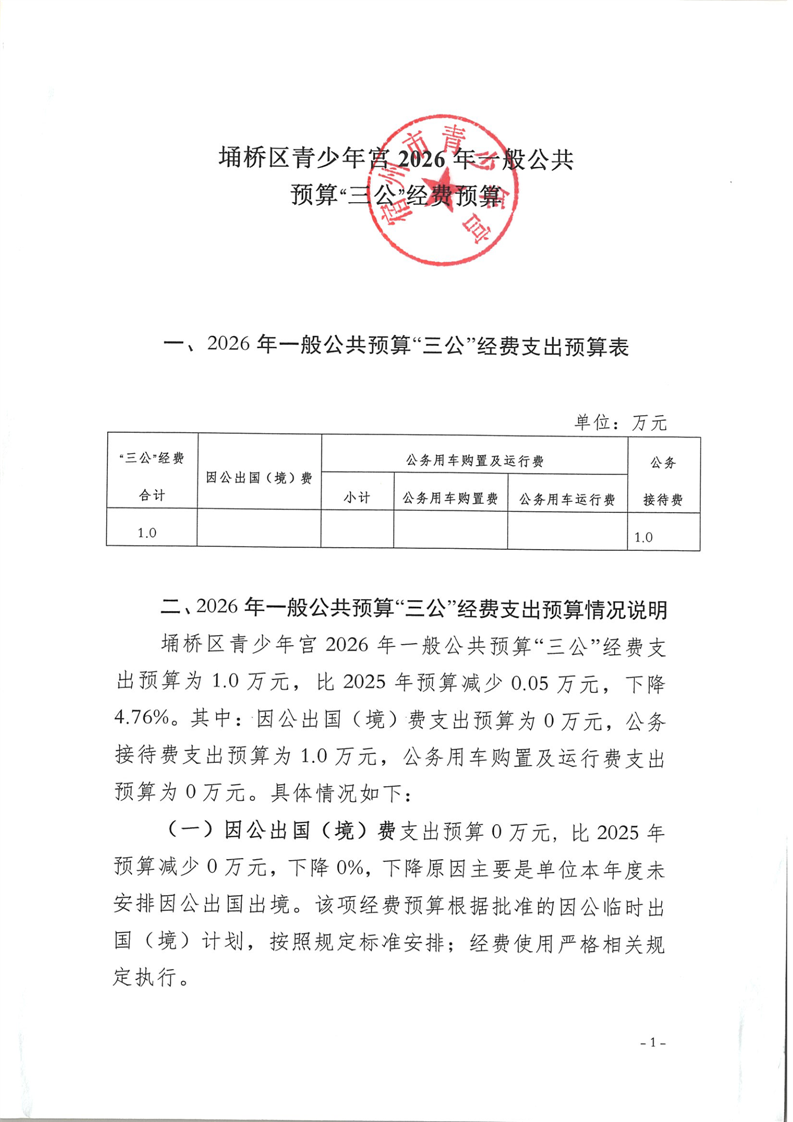 埇桥区青少年宫2026年“三公”经费预算
