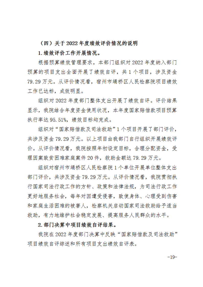 埇桥区人民检察院2022年国家赔偿款及司法救助项目绩效自评报告.doc