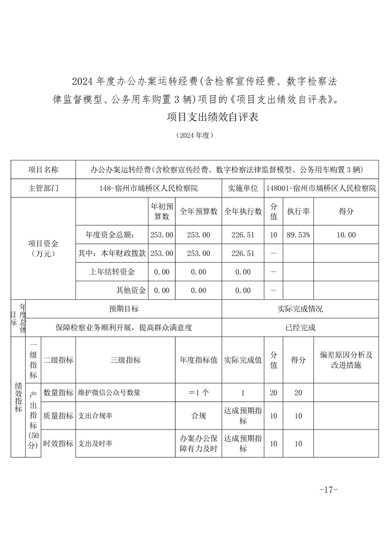 附件2:宿州市埇桥区人民检察院-办公办案运转经费(含检察宣传经费、数字检察法律监督模型、公务用车购置3辆)项目绩效评价报告.pdf