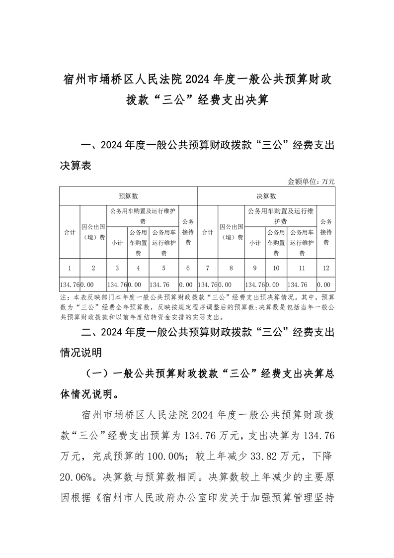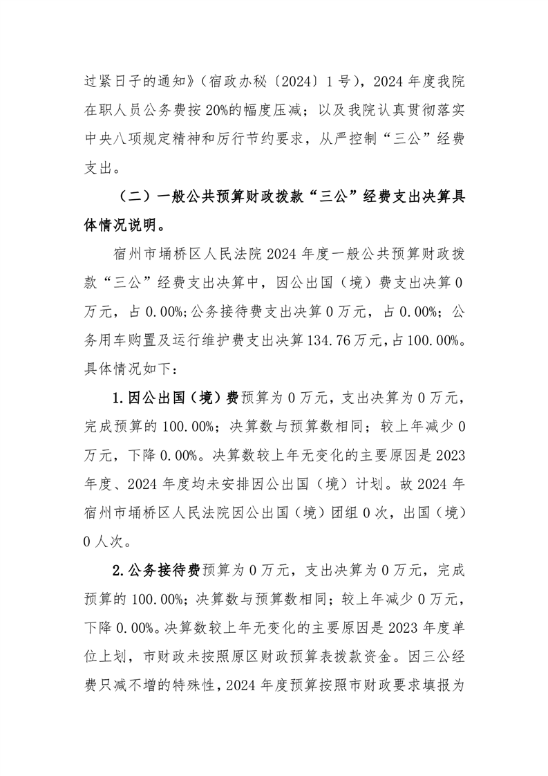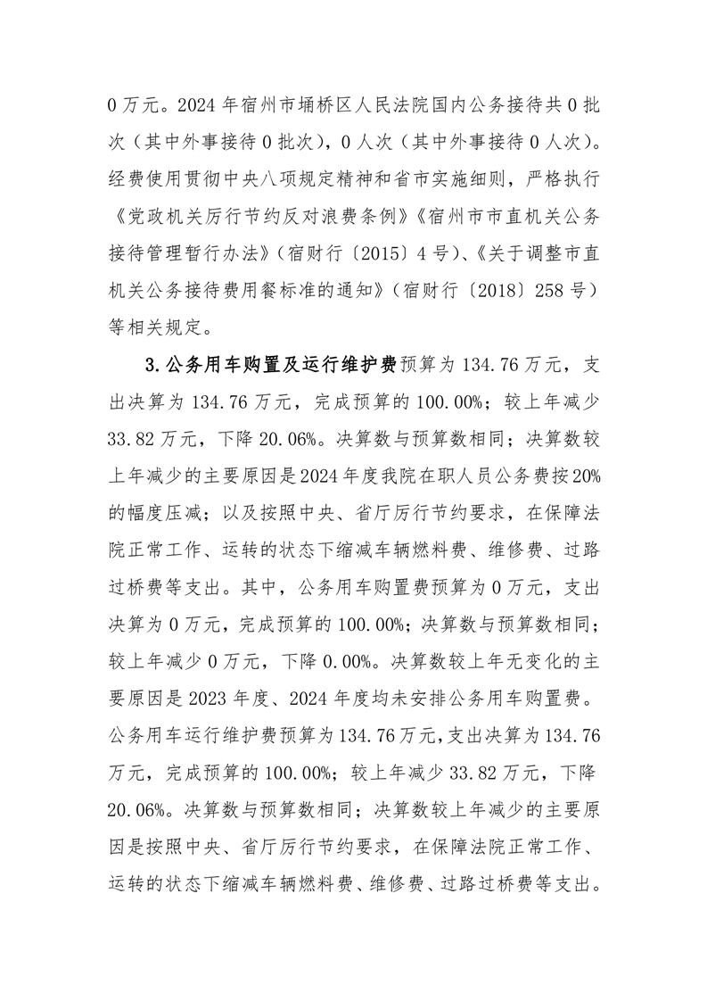 宿州市埇桥区人民法院2024年度一般公共预算财政拨款“三公”经费支出决算