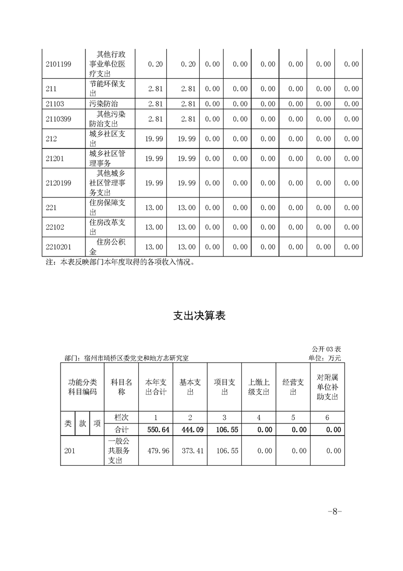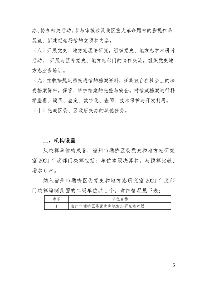 宿州市埇桥区委党史和地方志研究室2021年度部门决算