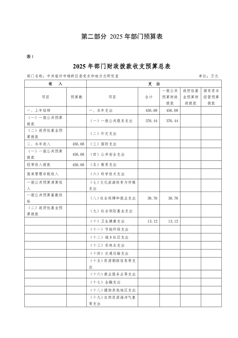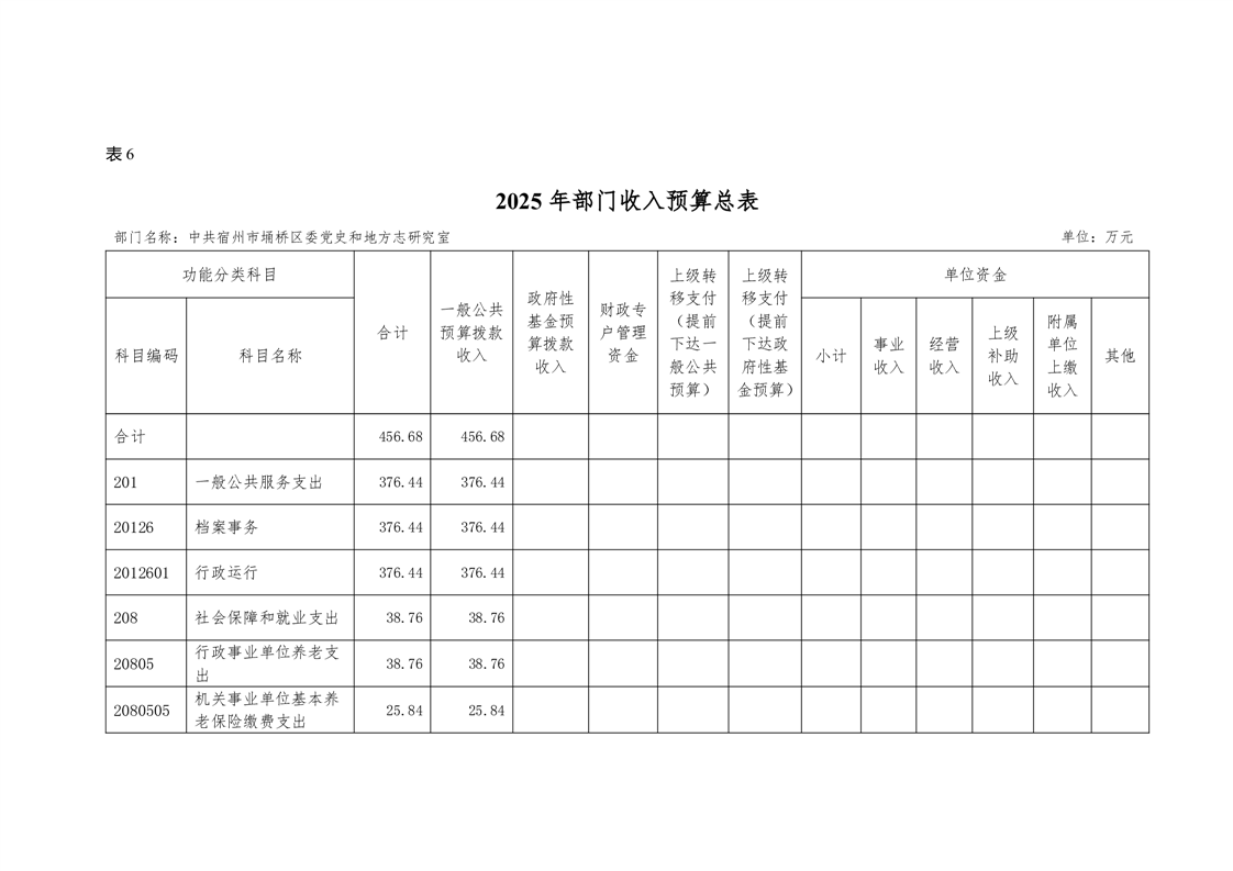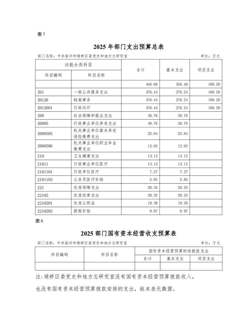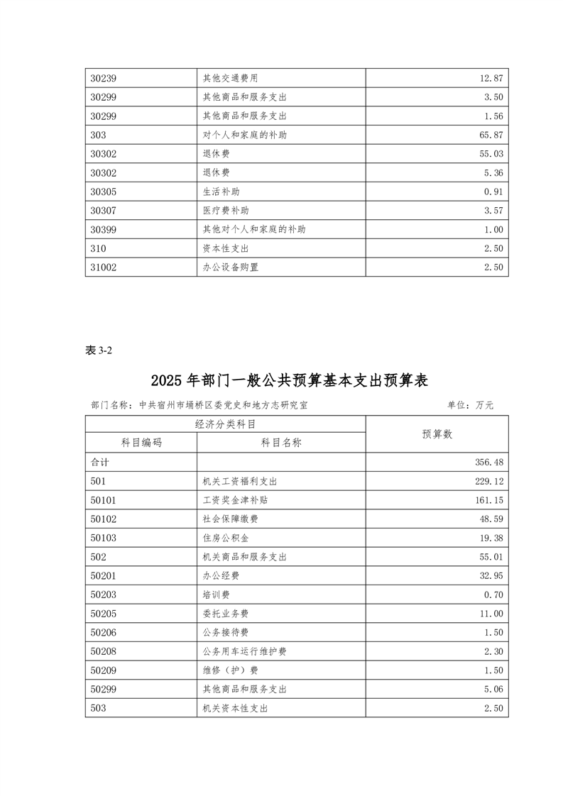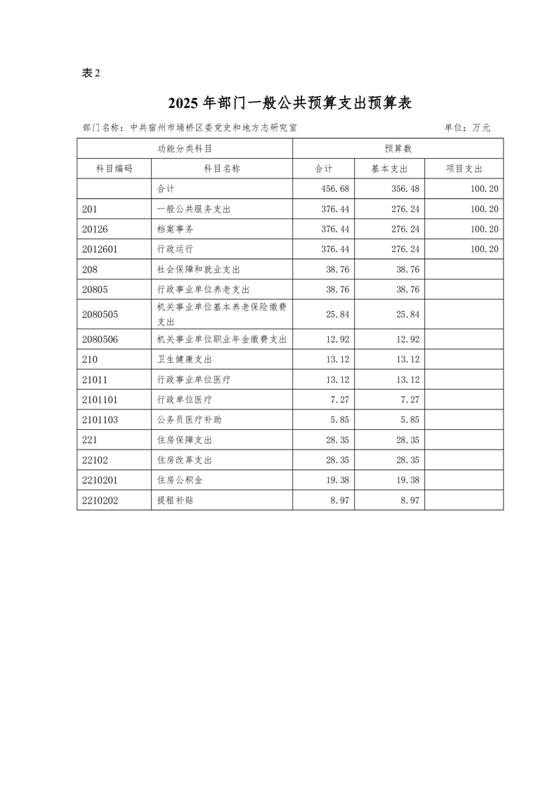 2025年埇桥区委党史和地方志研究室预算公开说明