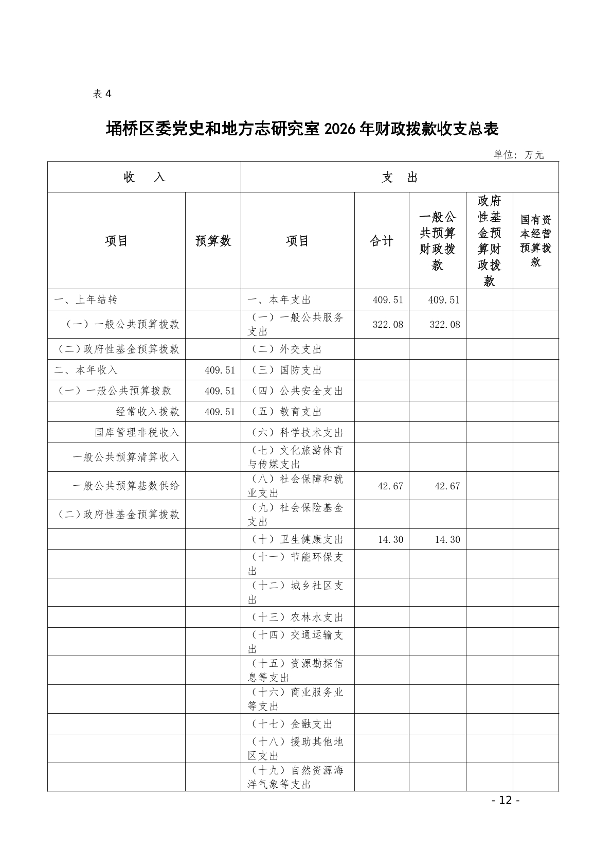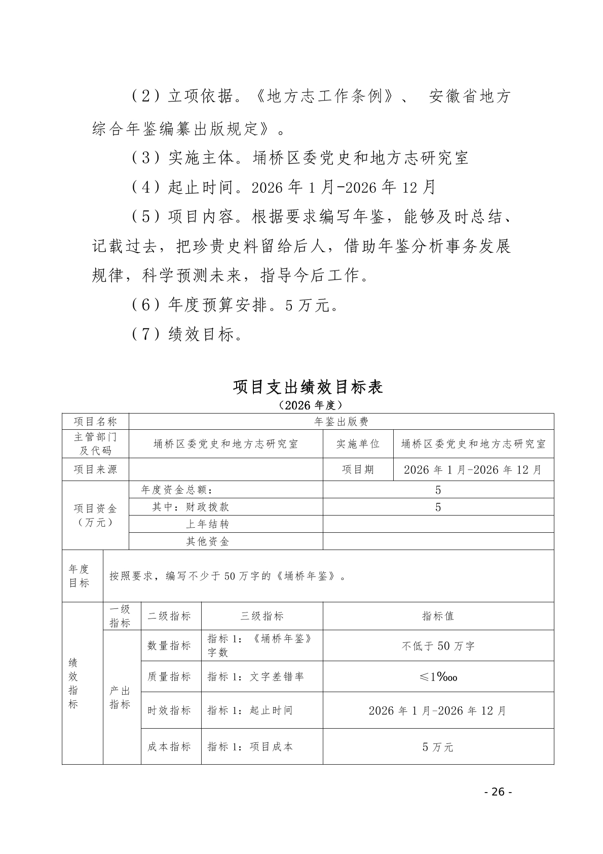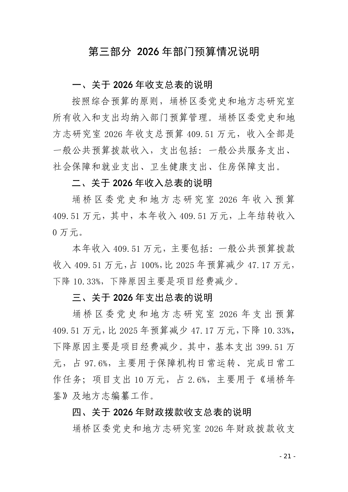 2026年埇桥区委党史和地方志研究室预算公开说明