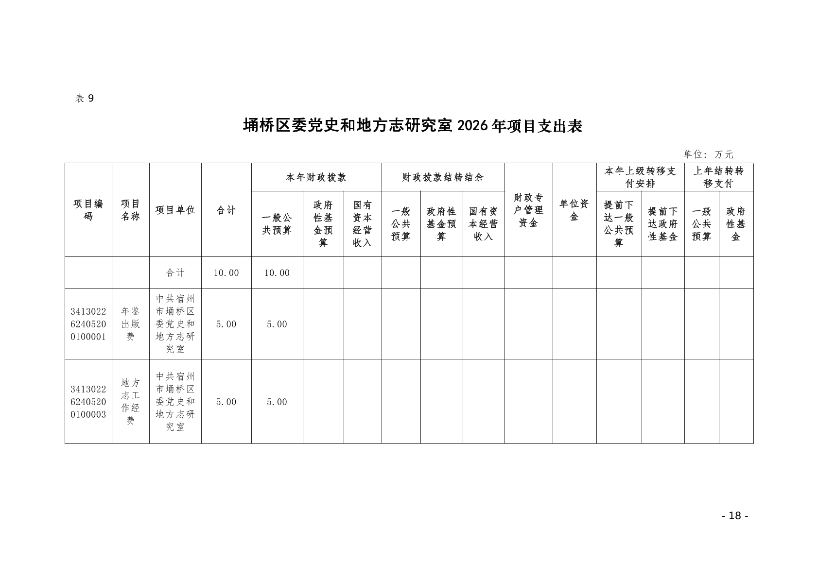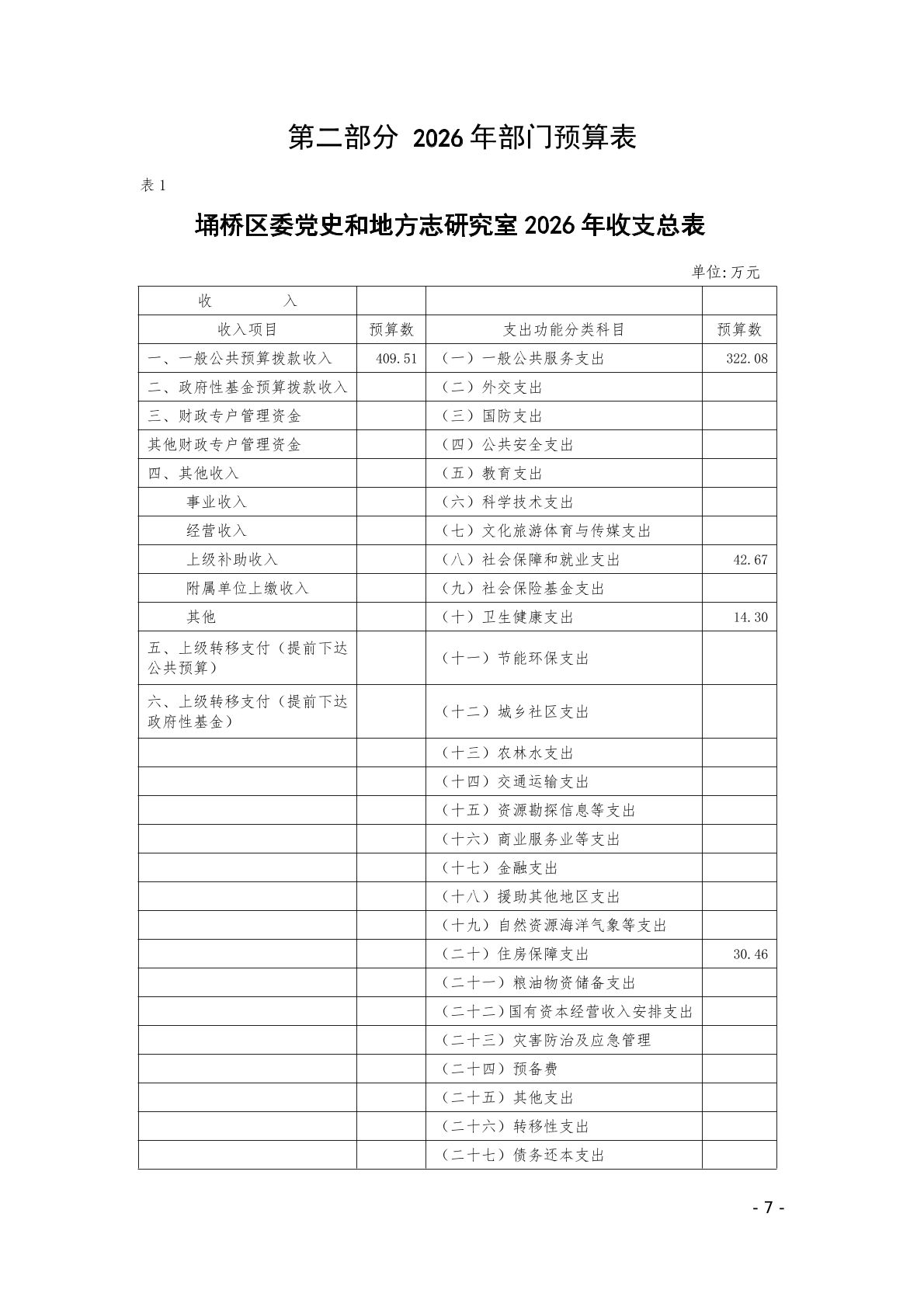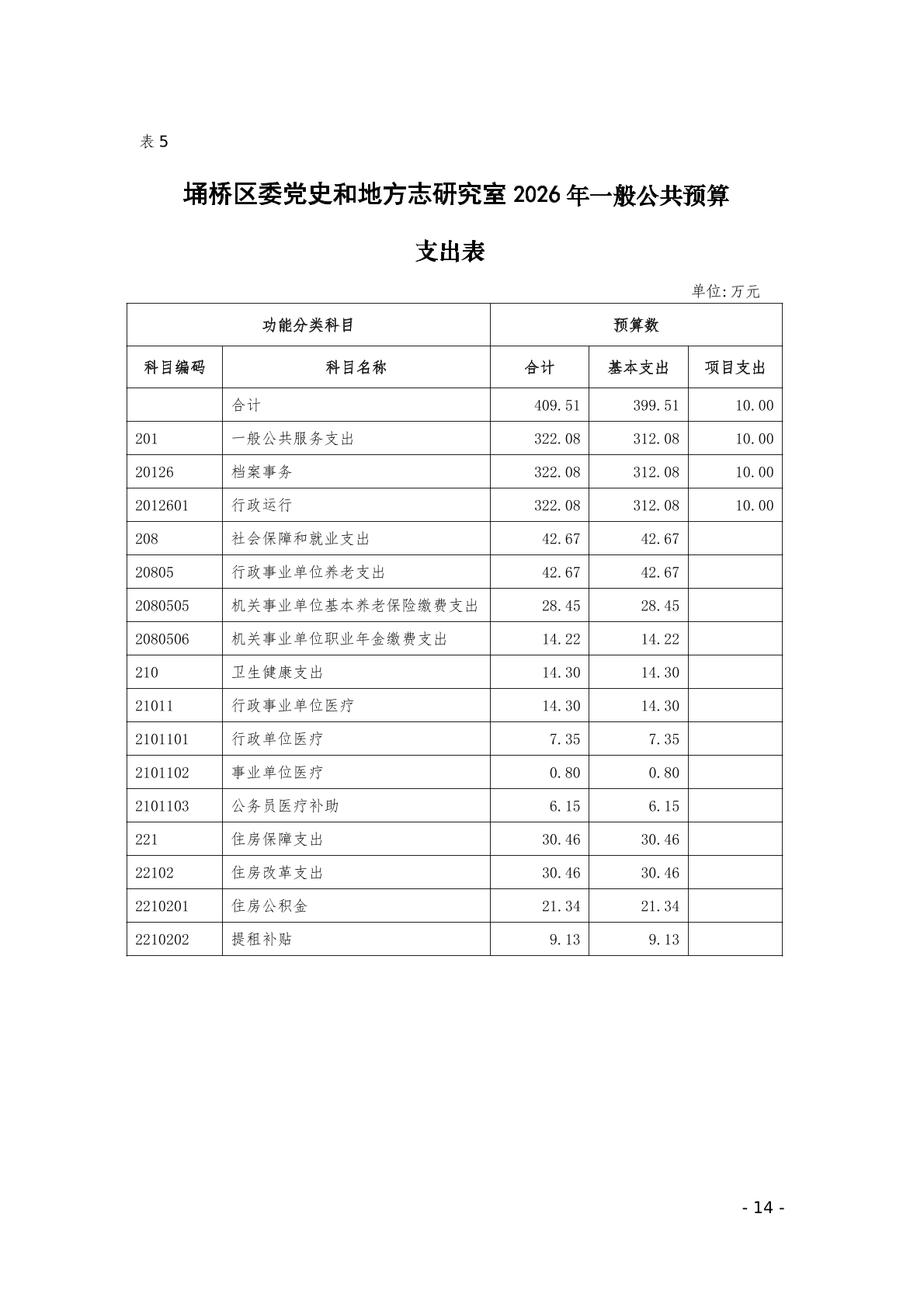 2026年埇桥区委党史和地方志研究室预算公开说明