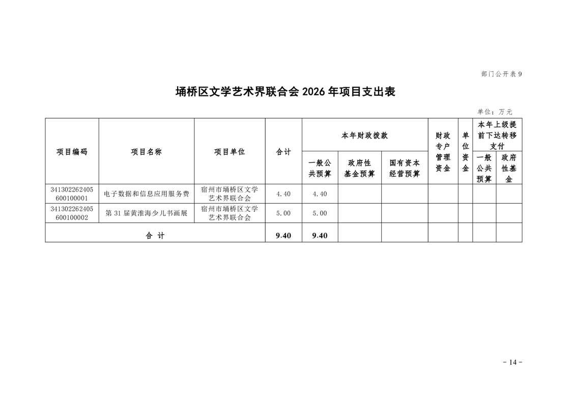 2026年埇桥区文联部门预算公开