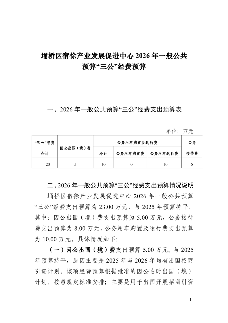 埇桥区宿徐产业发展促进中心2026年一般公共预算“三公”经费预算