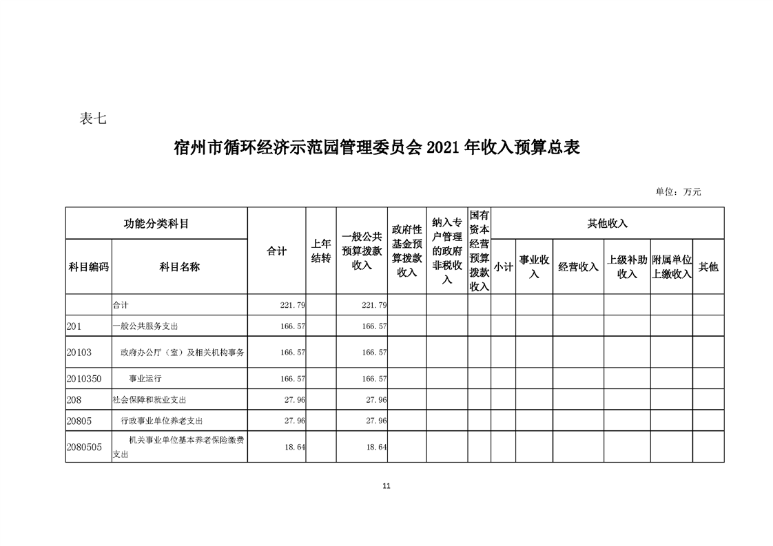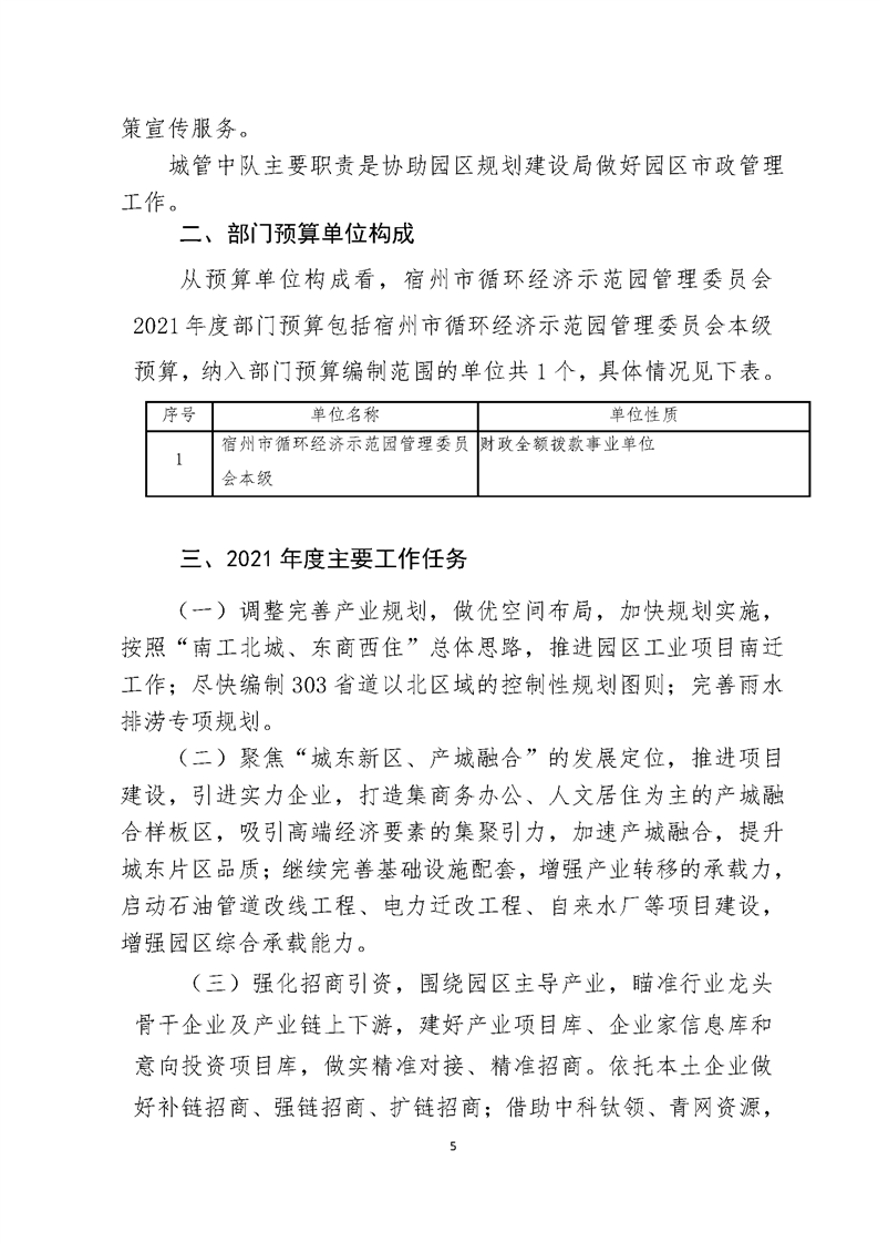 2021年宿州市循环经济示范园管理委员会预算公开说明