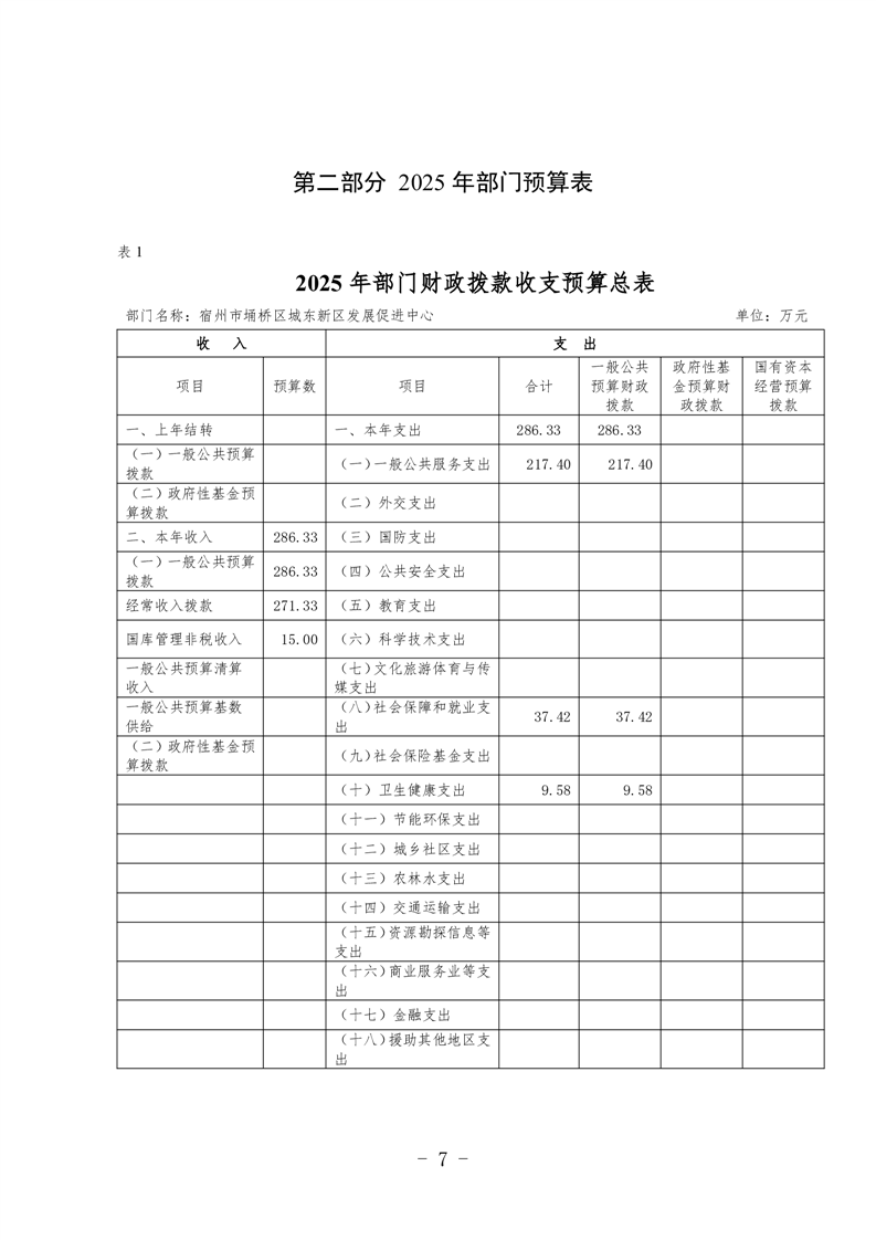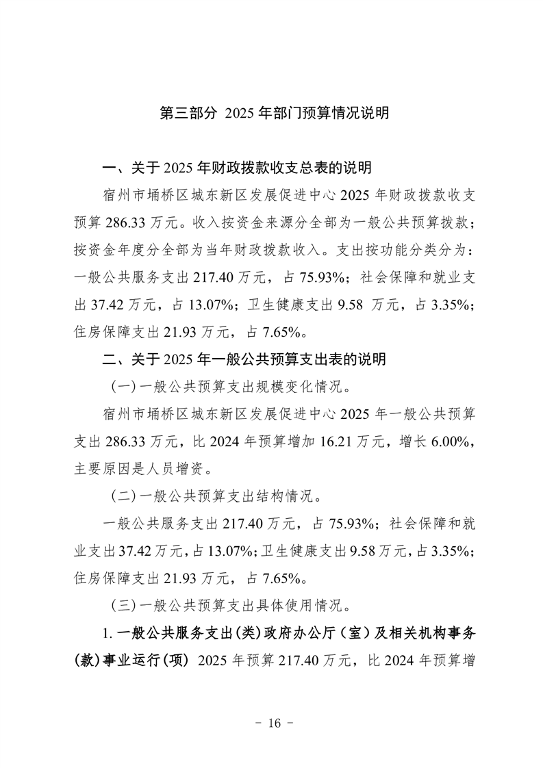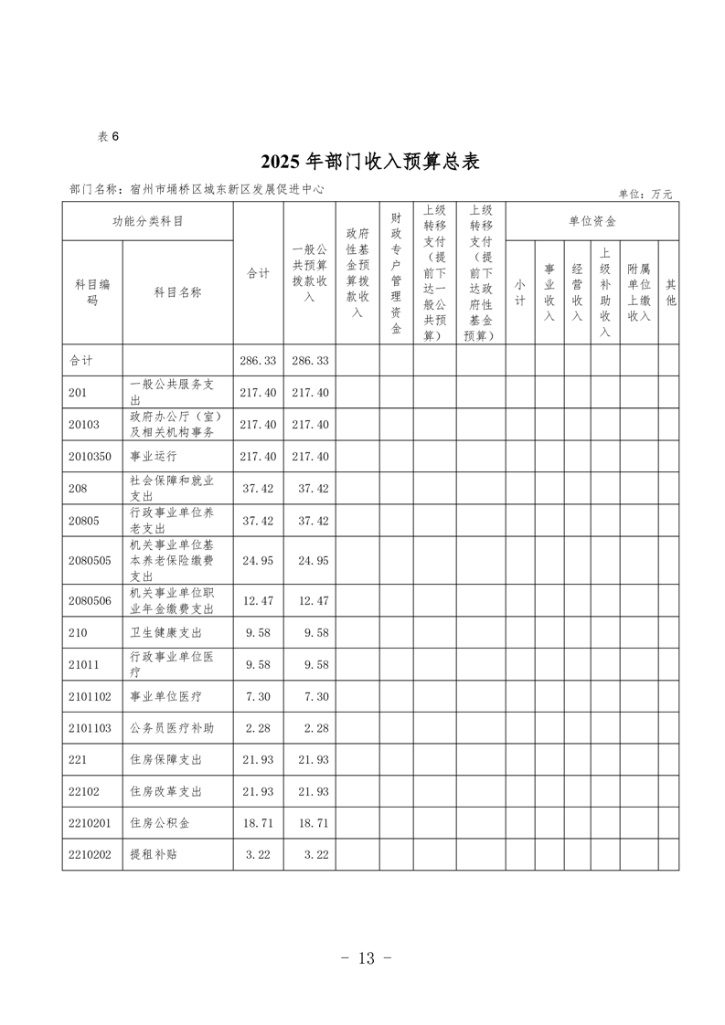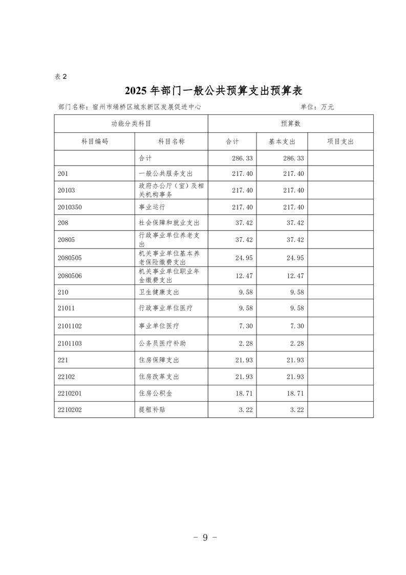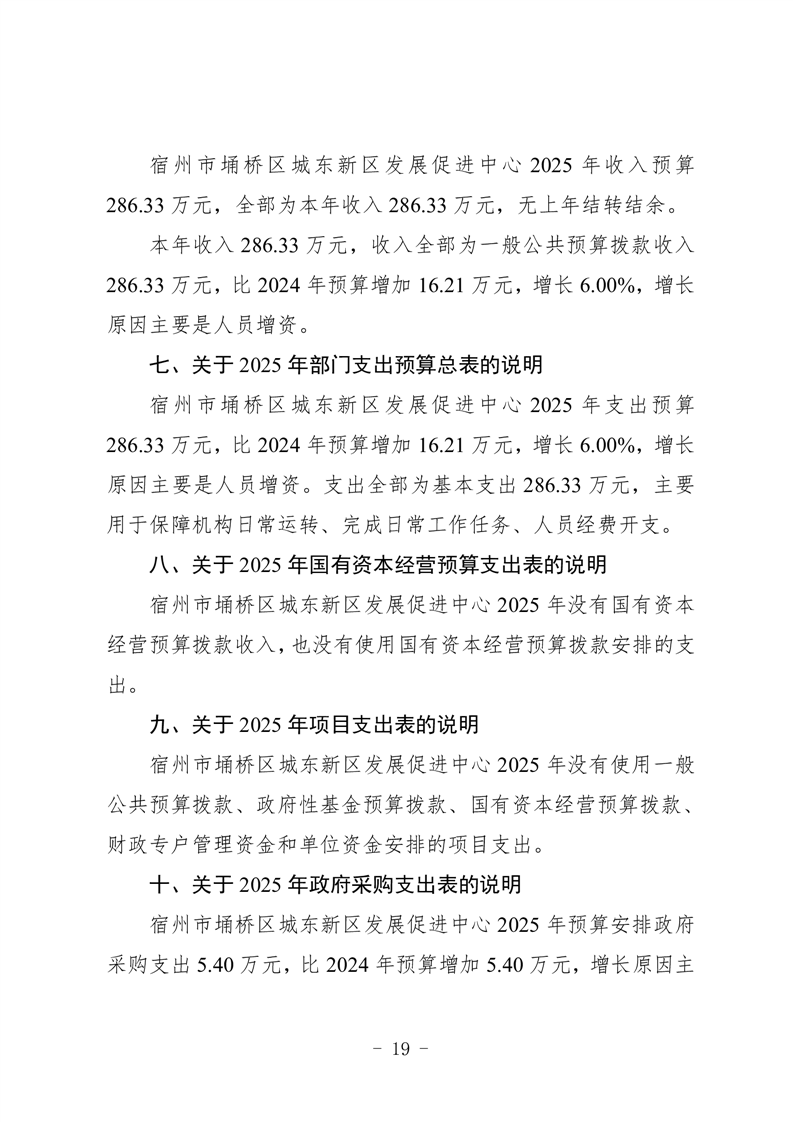 宿州市埇桥区城东新区发展促进中心2025年部门预算
