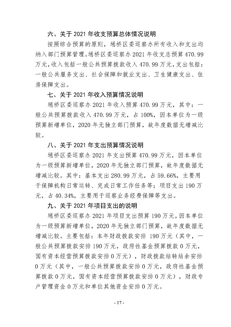 2021年中共宿州市埇桥区委巡察工作领导小组办公室预算公开说明
