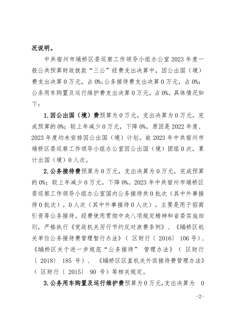 宿州市埇桥区委巡察办2023年“三公”经费决算公开