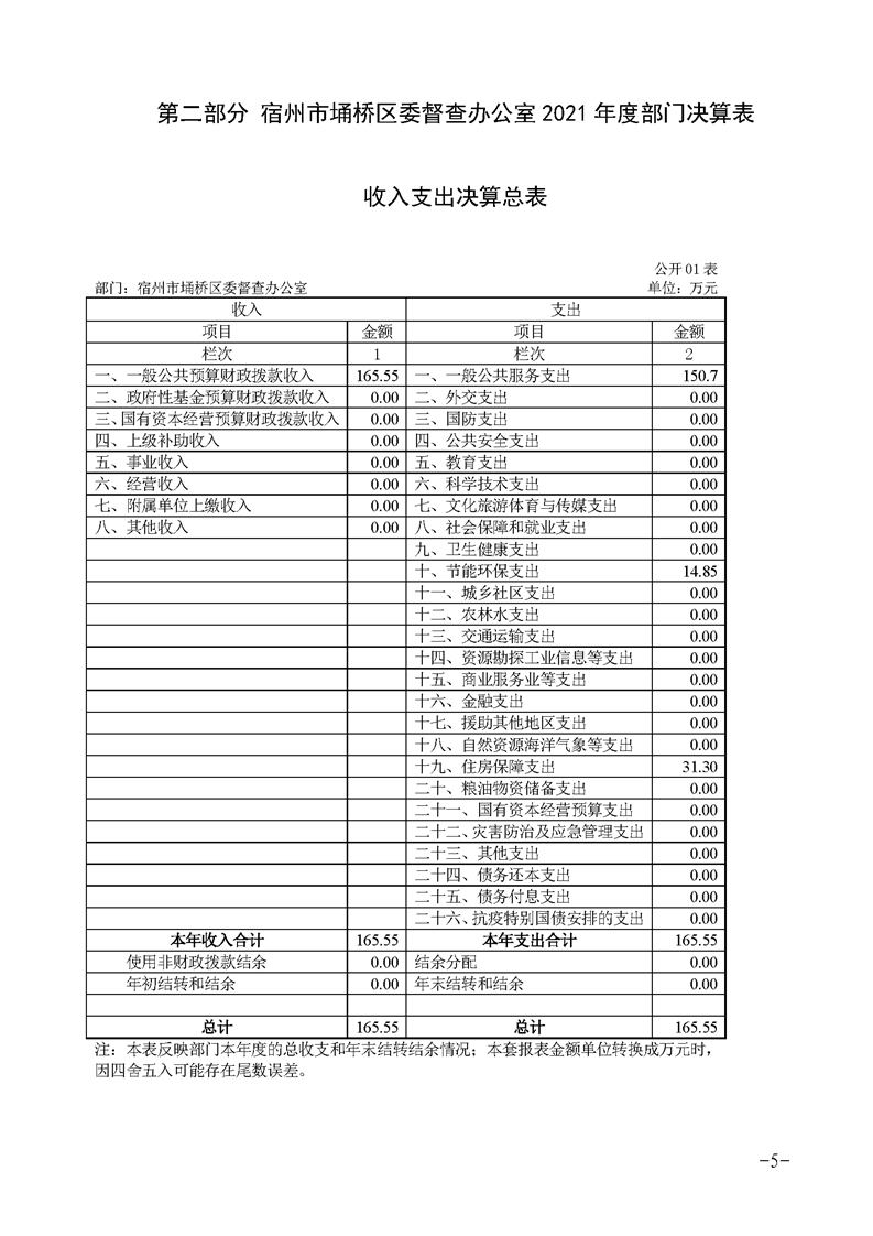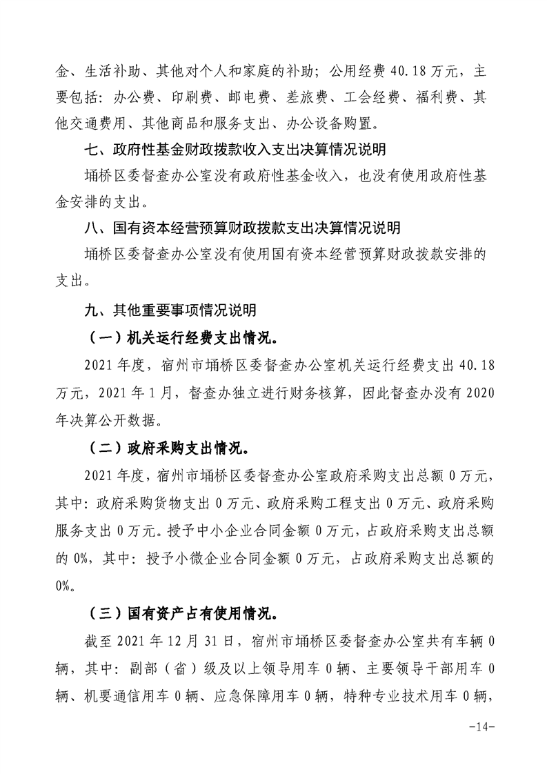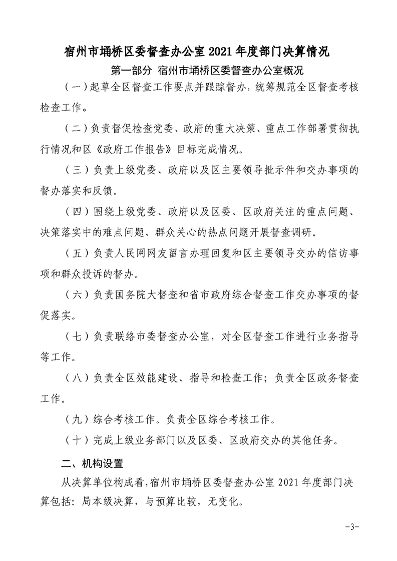 宿州市埇桥区委督查办公室部门2021年度部门决算