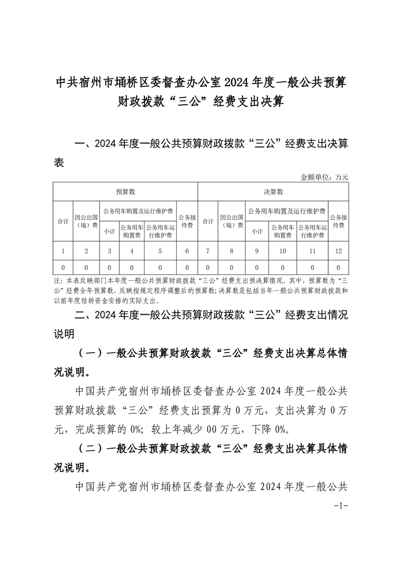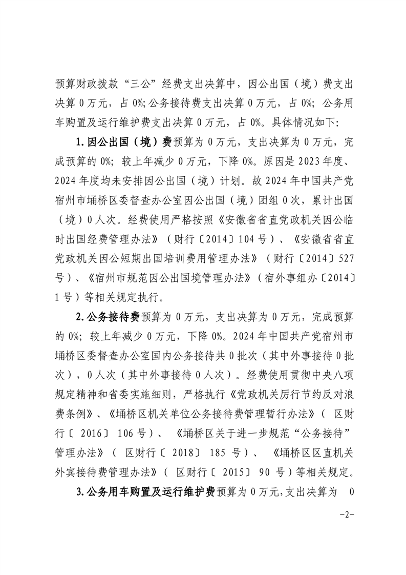 宿州市埇桥区委督查办公室2024年度一般公共预算财政拨款“三公”经费支出决算