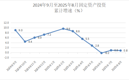 2024年9月至2025年8月固定资产投资累计增速(%)