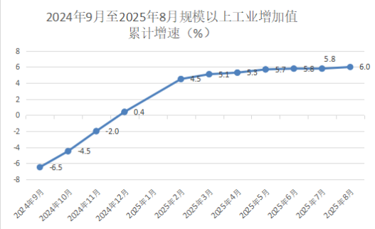 2024年9月至2025年8月规模以上工业增加值累计增速(%)