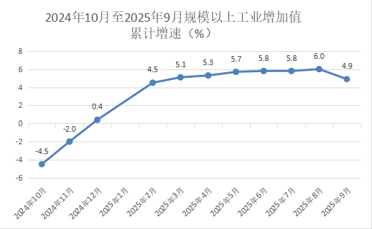 2024年10月至2025年9月规模以上工业增加值累计增速(%)