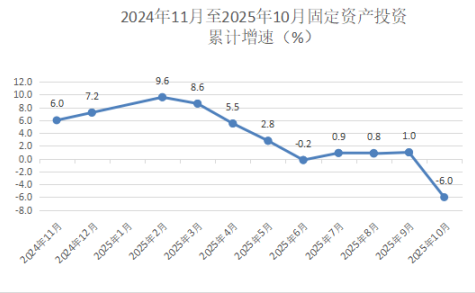 2024年11月至2025年10月固定资产投资累计增速(%)