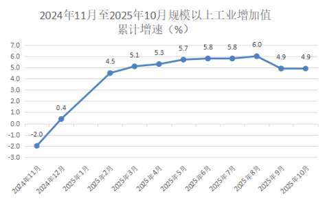 2024年11月至2025年10月规模以上工业增加值累计增速(%)