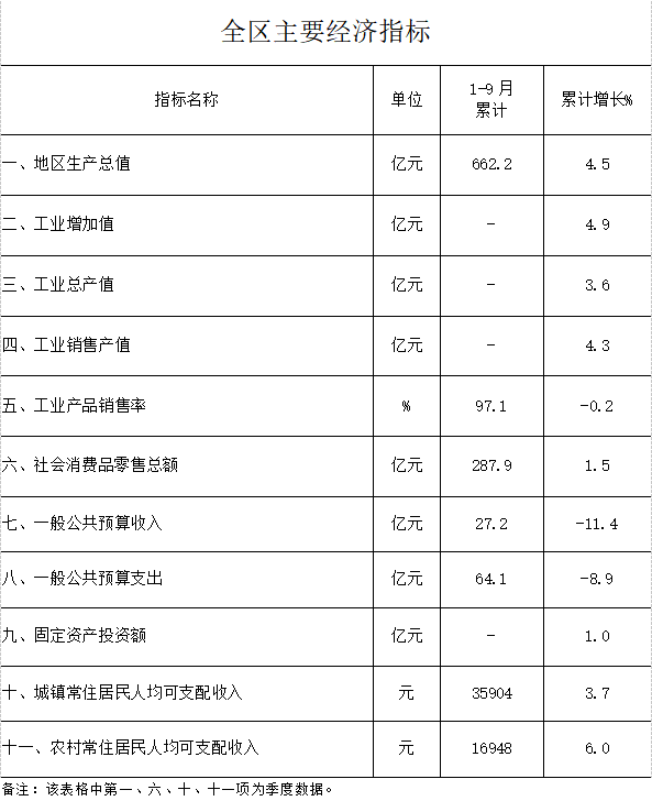 宿州市埇桥区2025年1-9月主要经济指标一览表